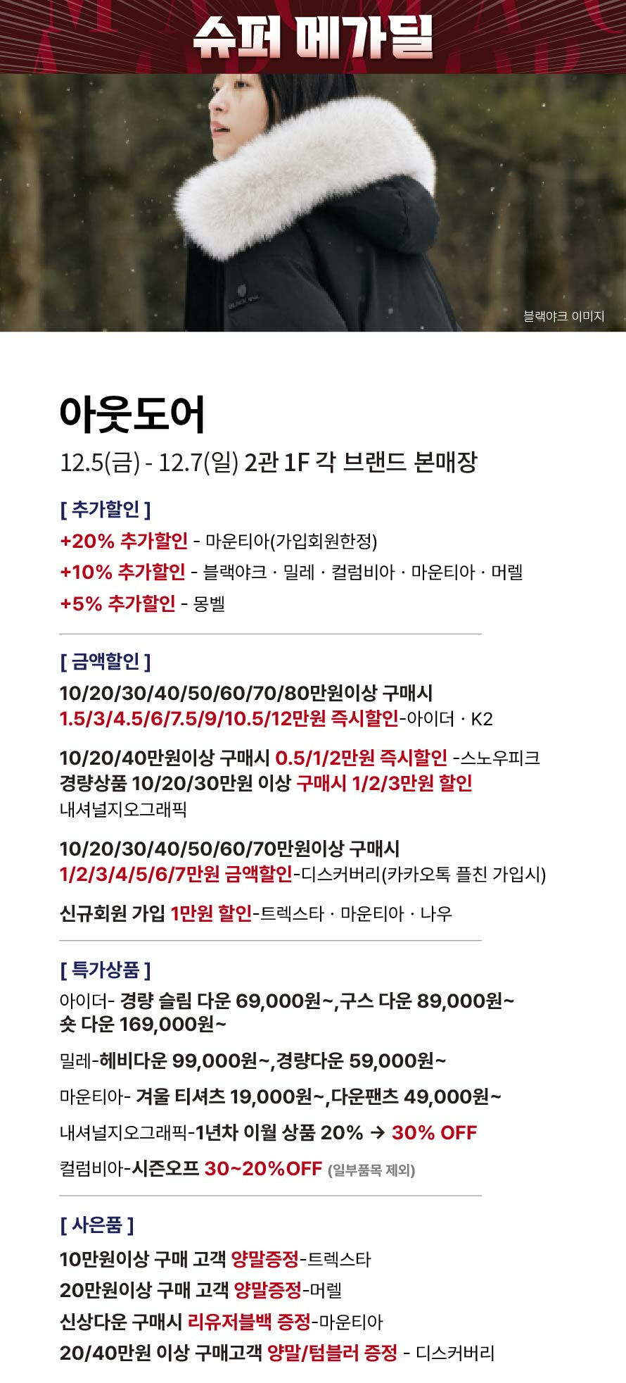 [슈퍼메가딜] 아웃도어 (2025-12-04 ~ 2025-12-07)