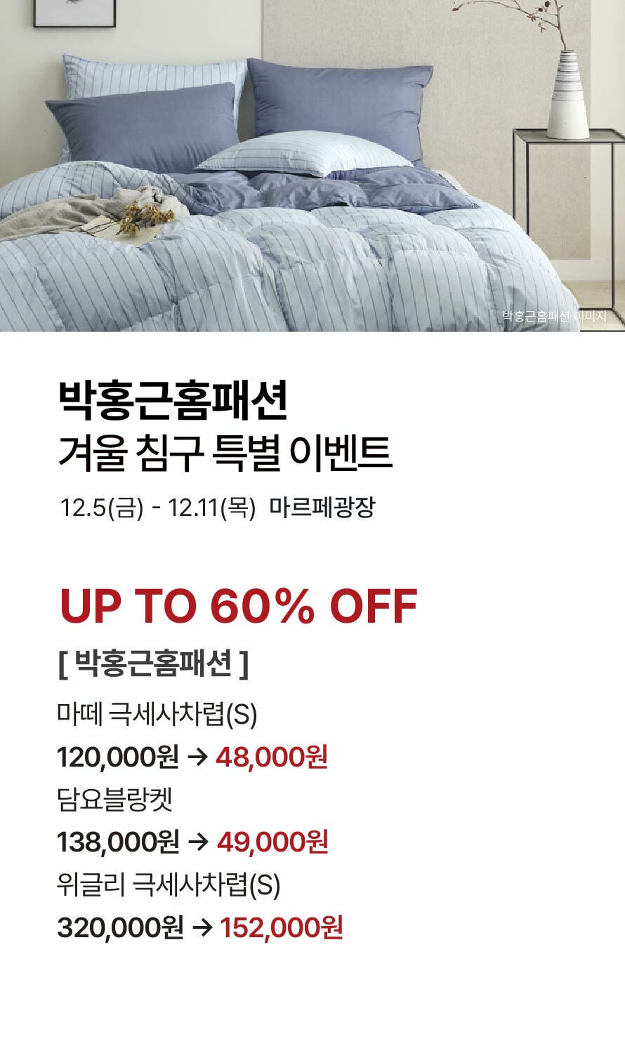 [박홍근홈패션] 겨울 침구 특별 이벤트 (2025-12-04 ~ 2025-12-11)