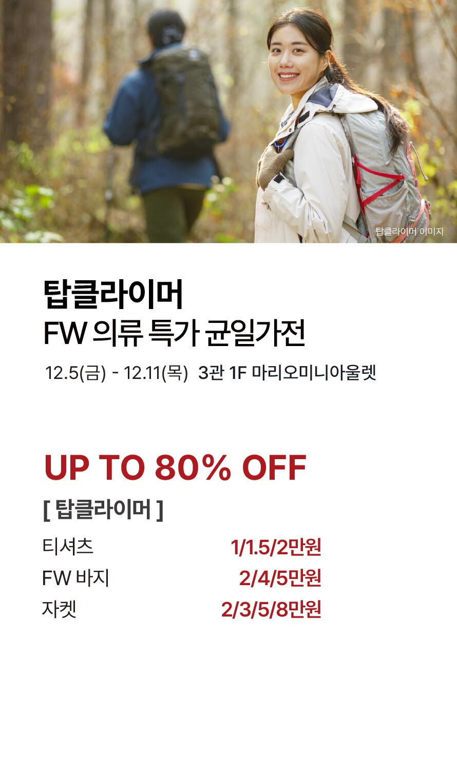 [탑클라이머] FW 의류 특가 균일가전 (2025-12-04 ~ 2025-12-11)