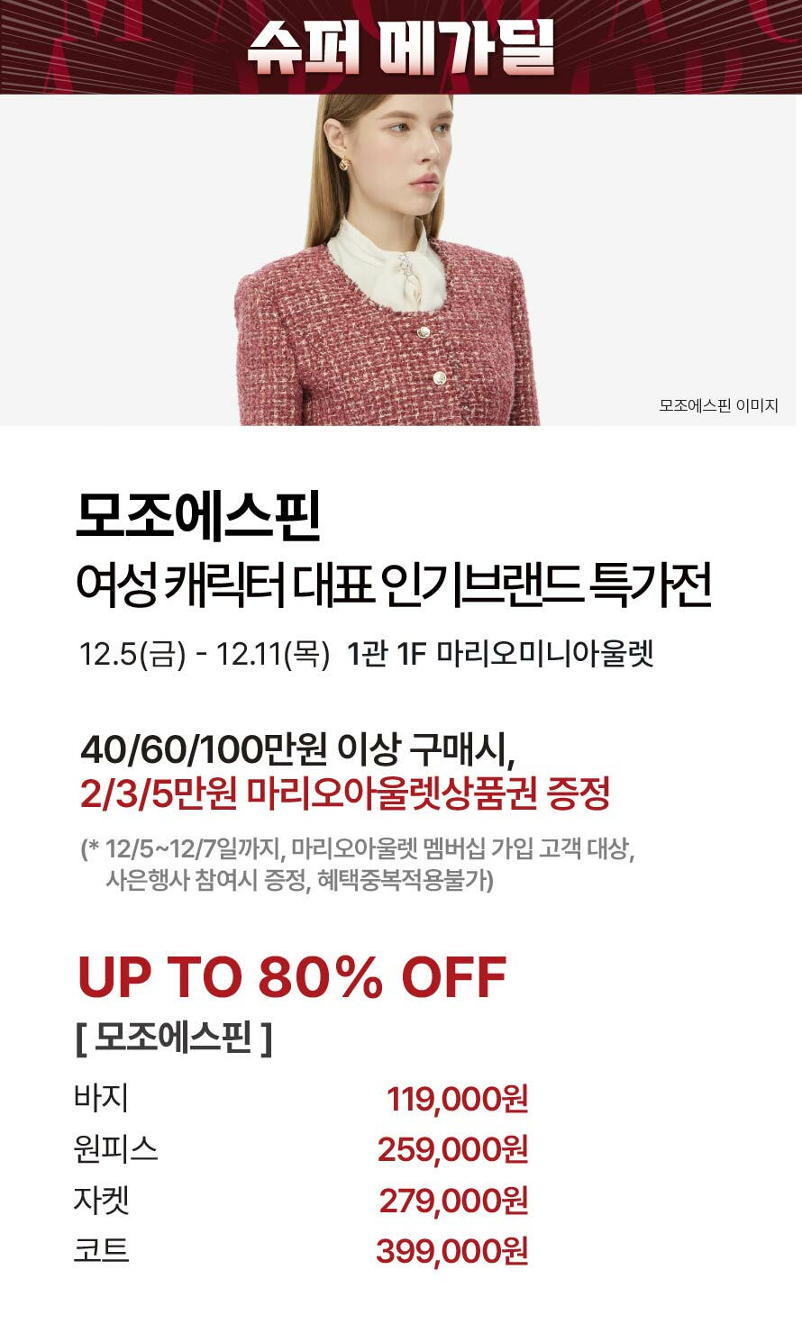 [슈퍼메가딜] 모조에스핀 여성 캐릭터 대표 인기브랜드 특가전 (2025-12-04 ~ 2025-12-11)