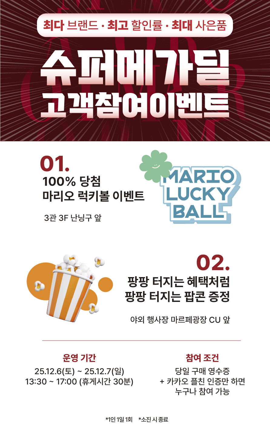 [주말 이벤트] 럭키볼·팝콘 증정 이벤트 (2025-12-04 ~ 2025-12-07)