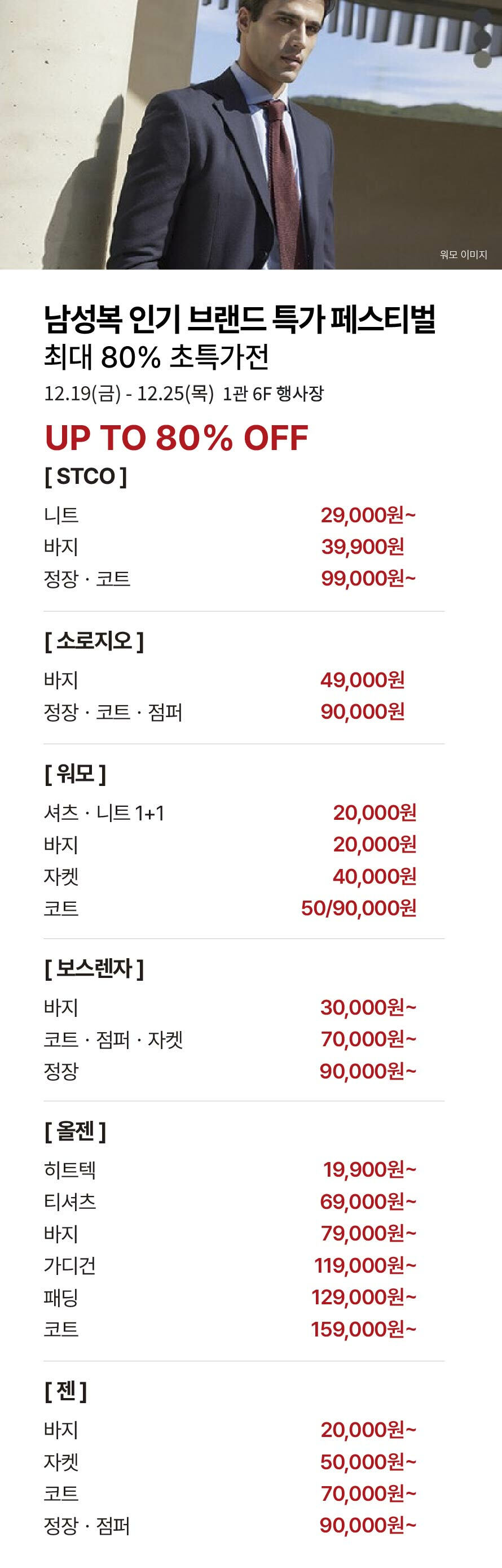 [인기 남성복 브랜드 특가 페스티벌] 최대 80% 초특가전 (2025-12-19 ~ 2025-12-25)