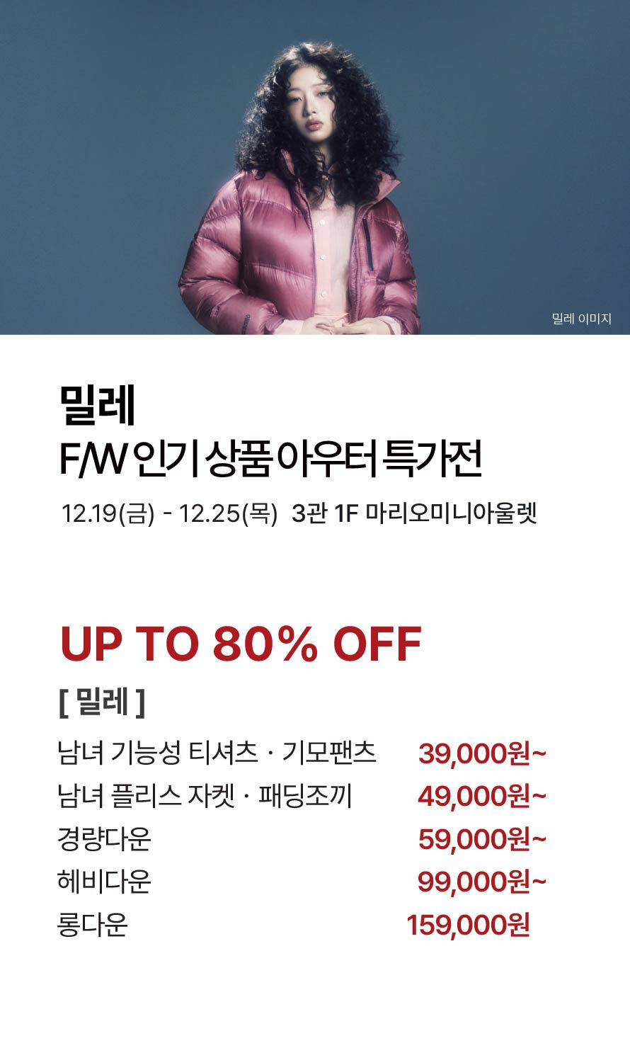 [밀레] F/W 인기 상품·아우터 특가전 (2025-12-19 ~ 2025-12-25)