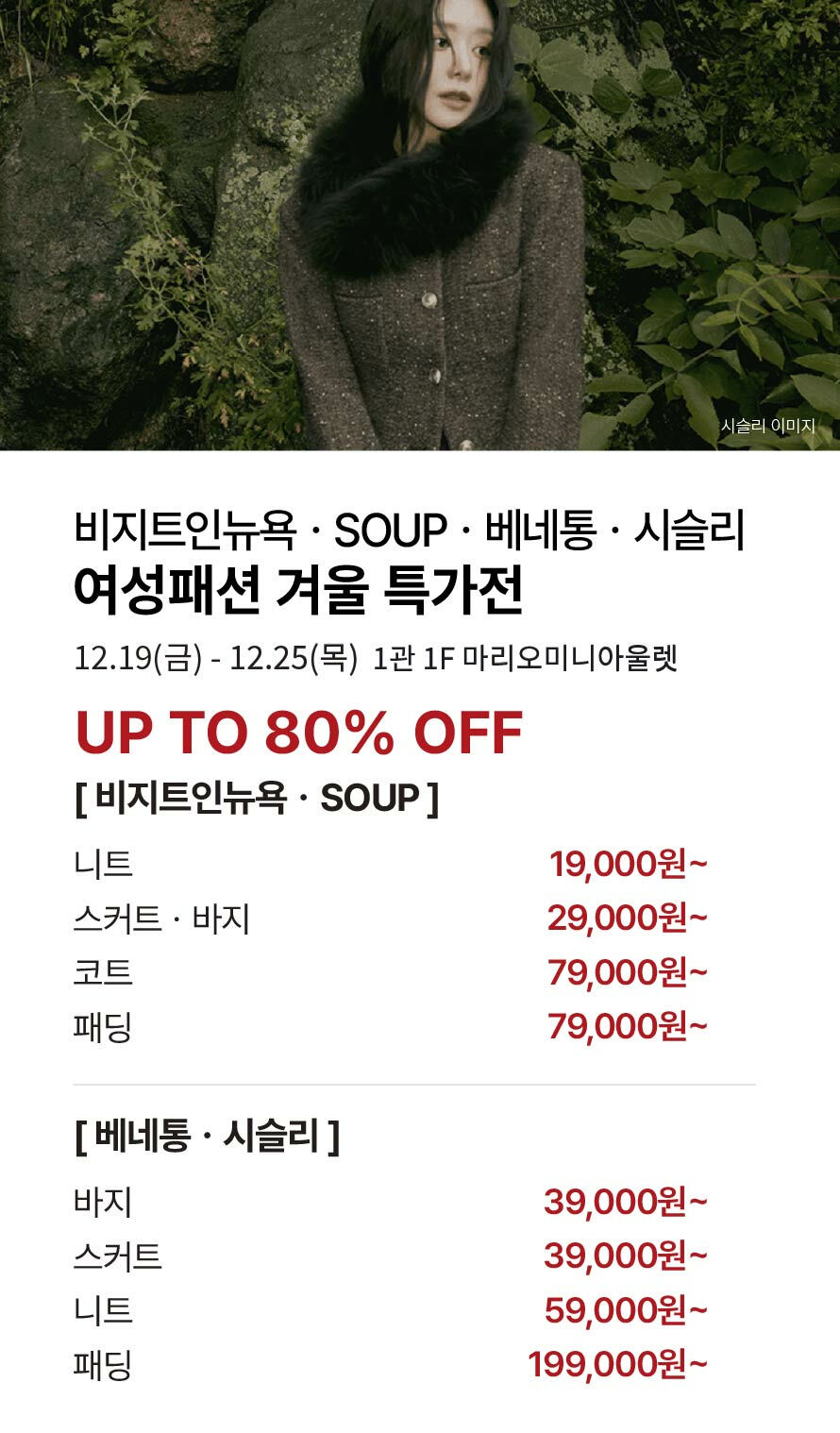 [비지트인뉴욕·SOUP·베네통·시슬리] 여성패션 겨울 특가전 (2025-12-19 ~ 2025-12-25)