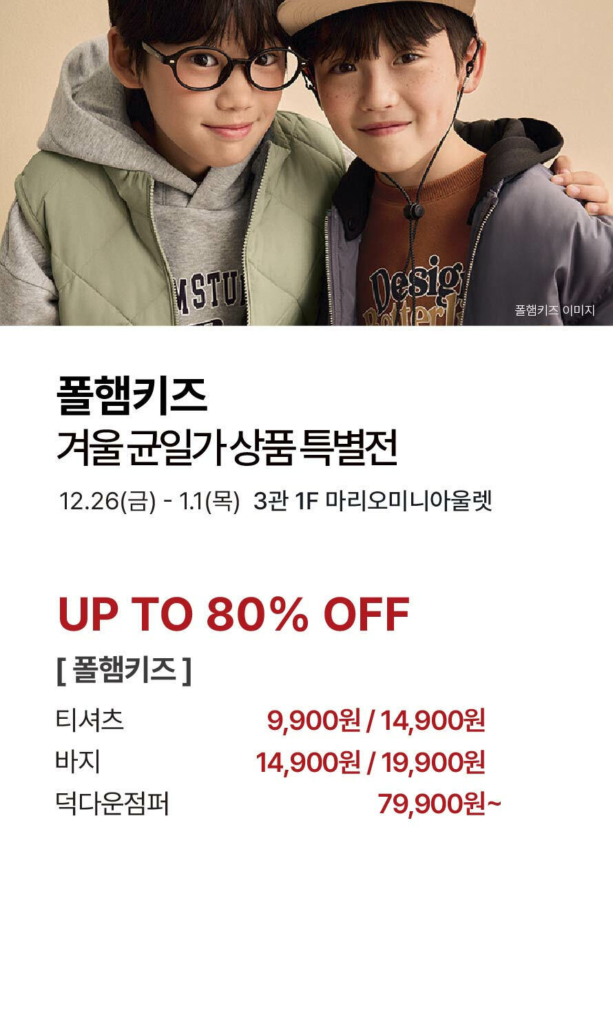 [폴햄키즈] 겨울 균일가 상품 특별전! (2025-12-26 ~ 2026-01-01)