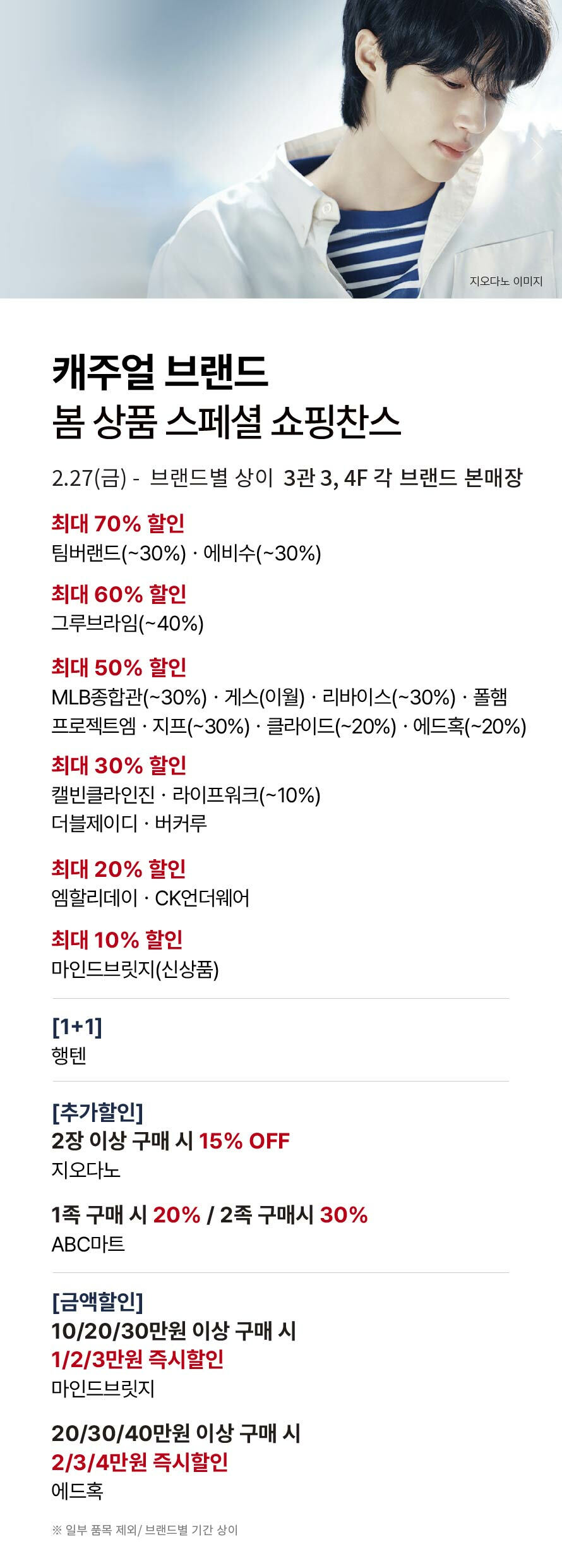 [캐주얼 브랜드] 봄 상품 스페셜 쇼핑찬스 (2026-02-27 ~ 각 브랜드 별 기간 상이)