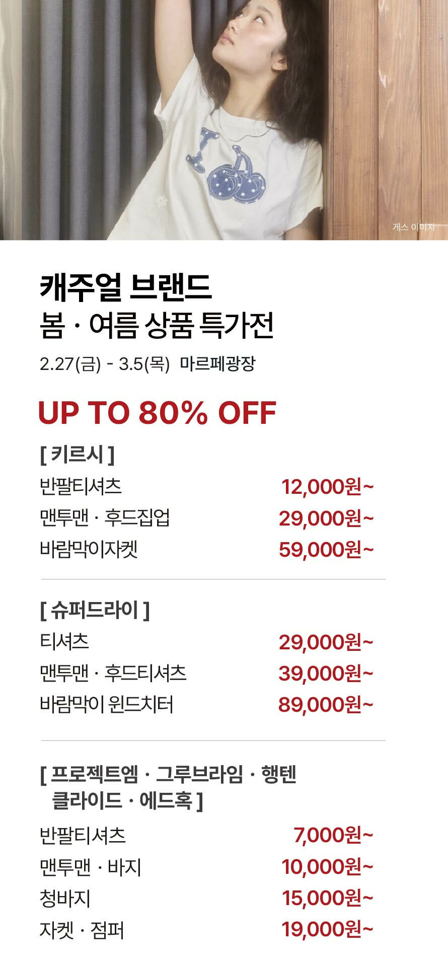 [캐주얼 브랜드] 봄/여름 상품 특가전 (2026-02-27 ~ 2026-03-05)