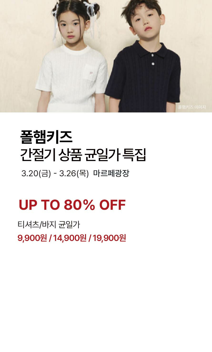 [폴햄키즈] 간절기 상품 균일가 특집 (2026-03-19 ~ 2026-03-26)