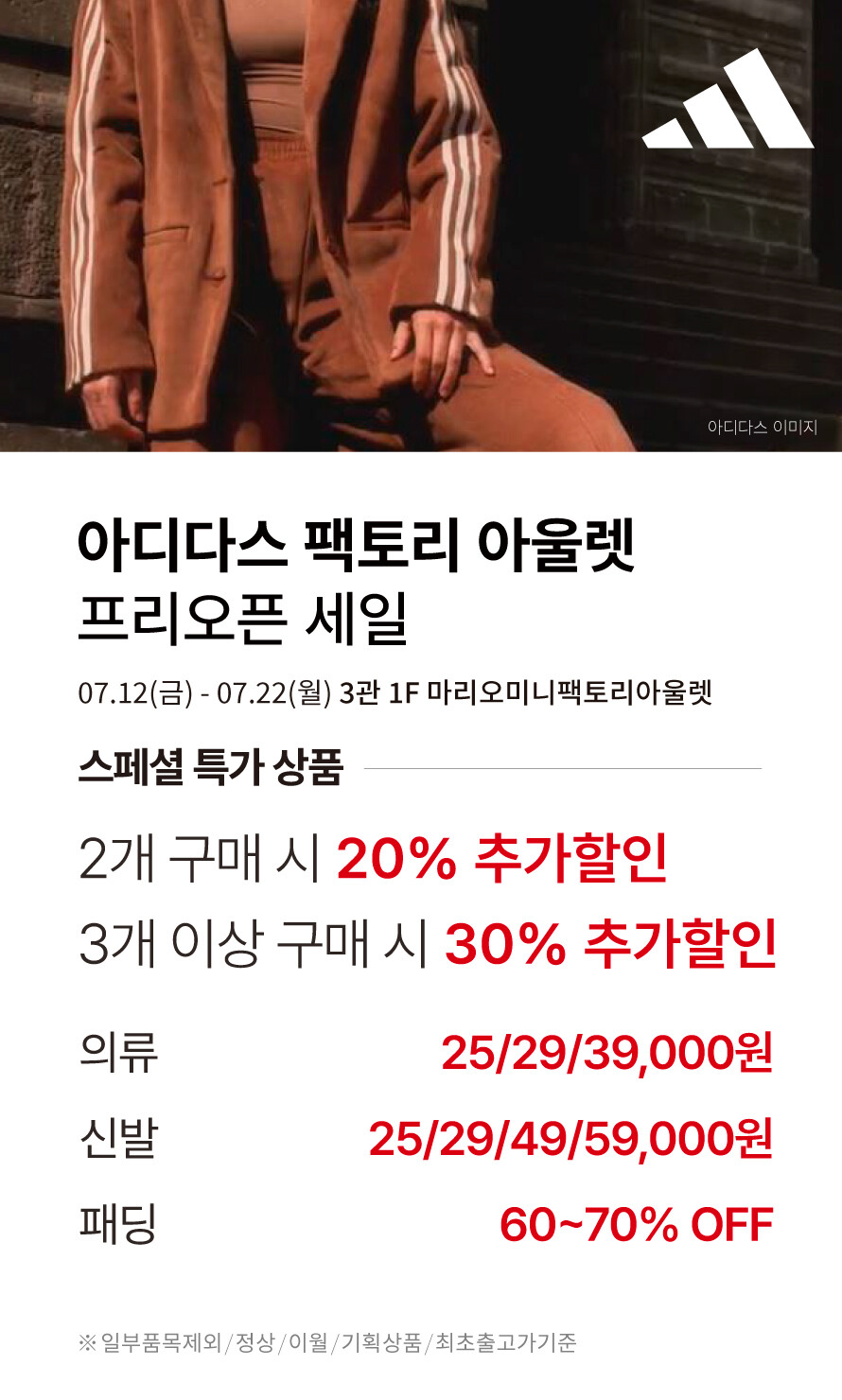 [아디다스 팩토리아울렛] 프리오픈 세일 (2024-07-12~2024-07-22)