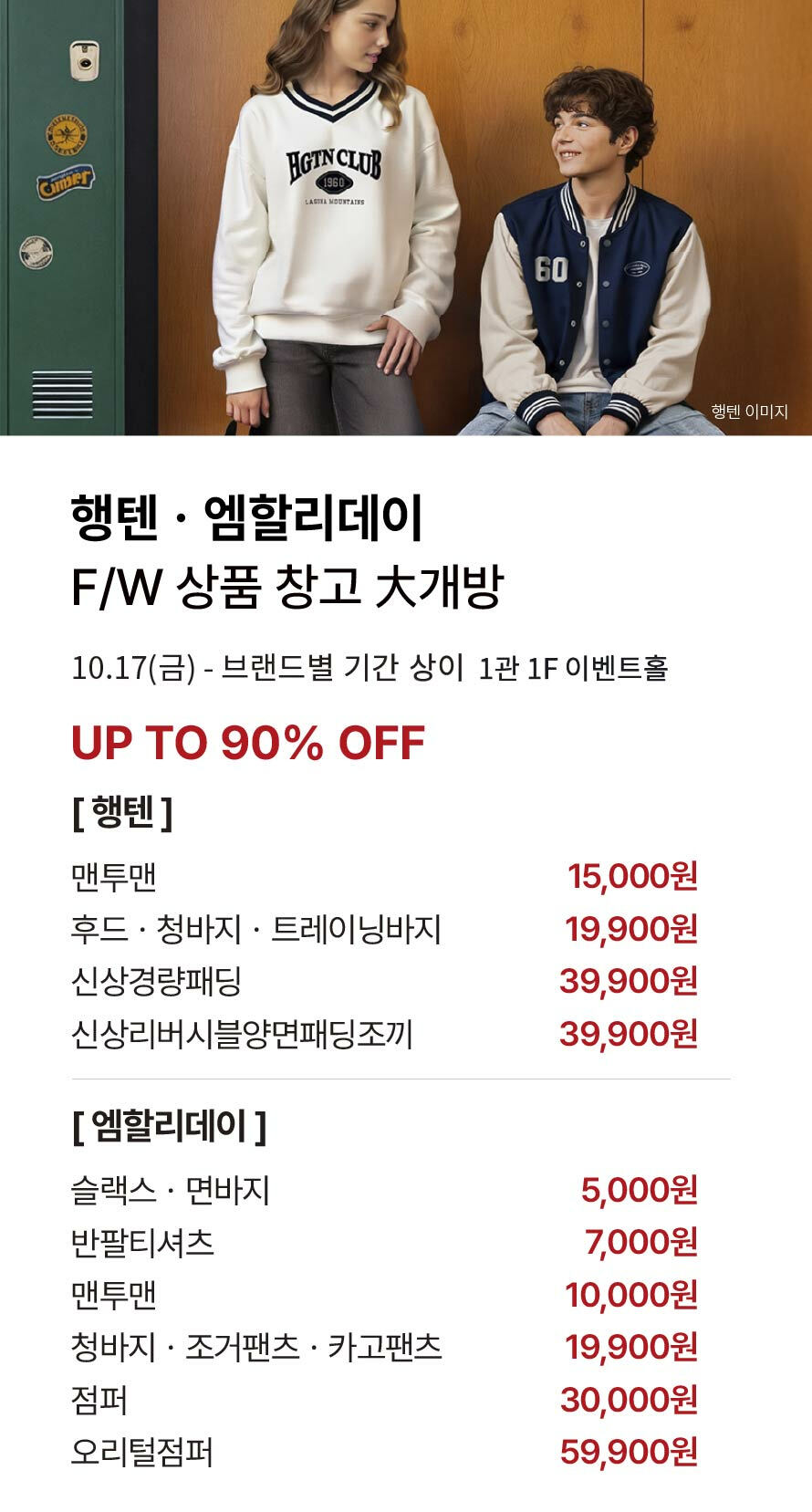 [행텐·엠할리데이] F/W 상품 창고 大개방 (2025-10-16 ~ 2025-10-23)