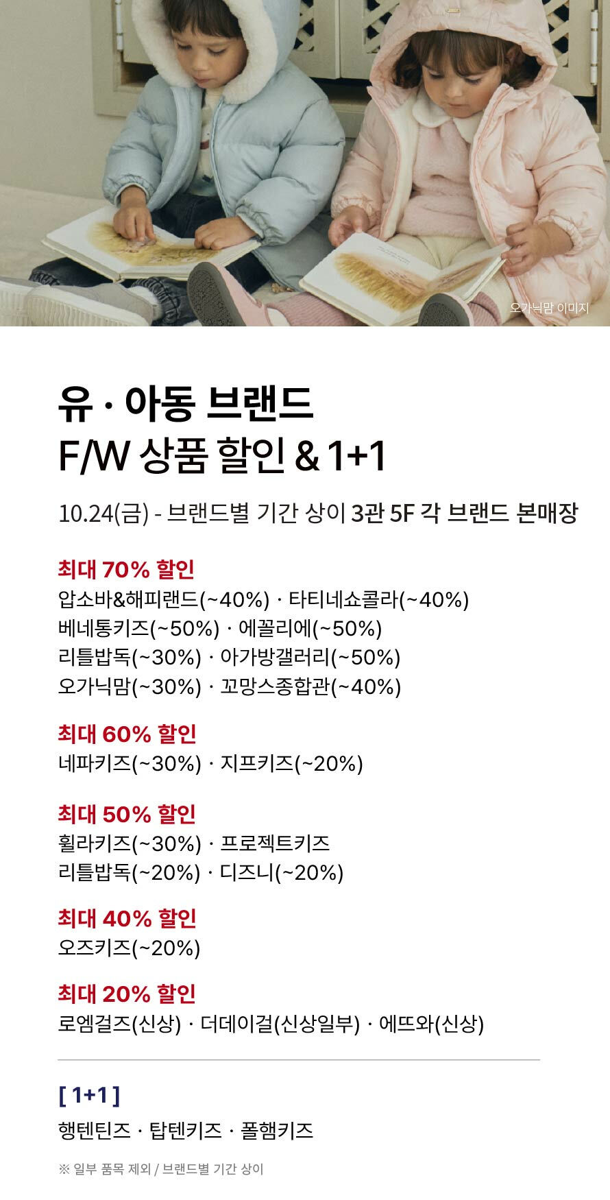 [유·아동] F/W 상품 할인 & 1+1 (2025-10-24 ~ 각 브랜드 별 기간 상이)