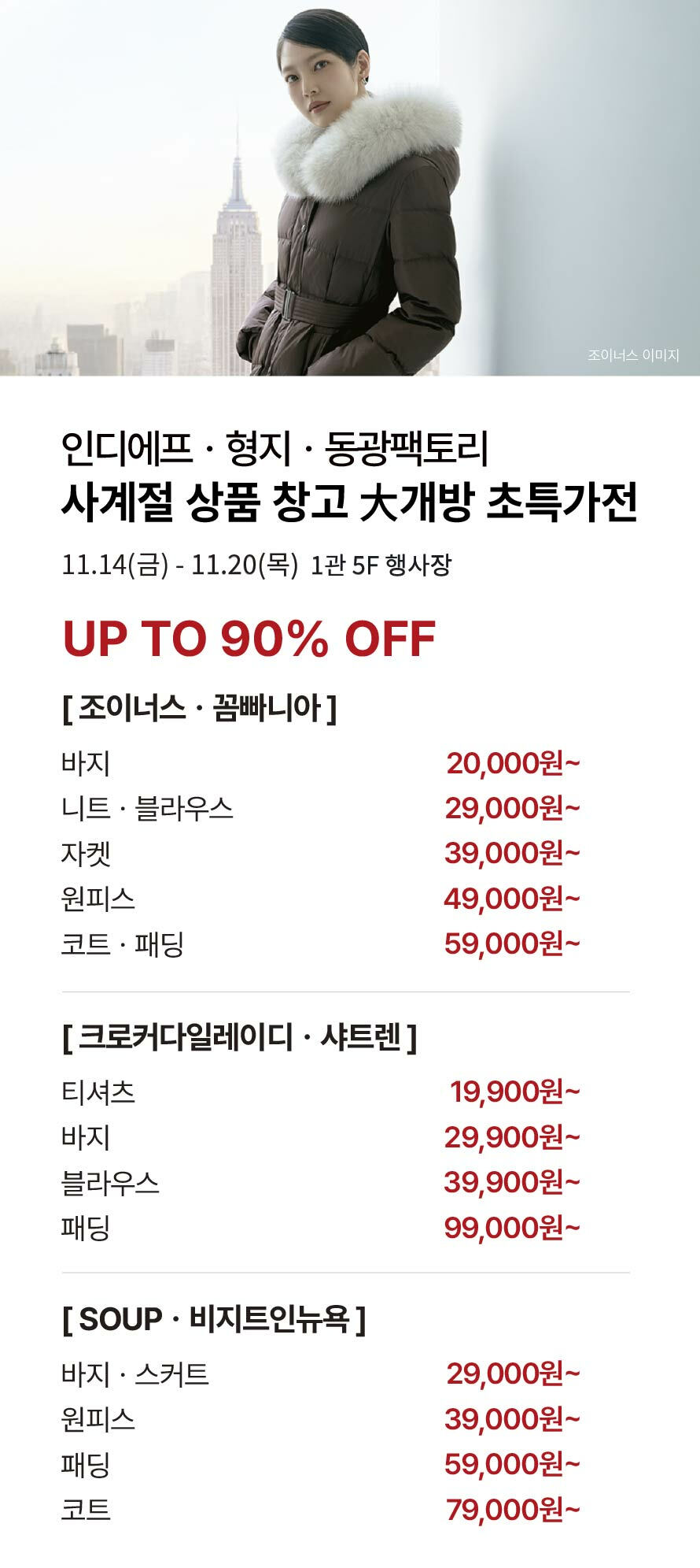 [인디에프·형지·동광 팩토리] 사계절 상품 창고大개방 초특가전 (2025-11-13 ~ 2025-11-20)