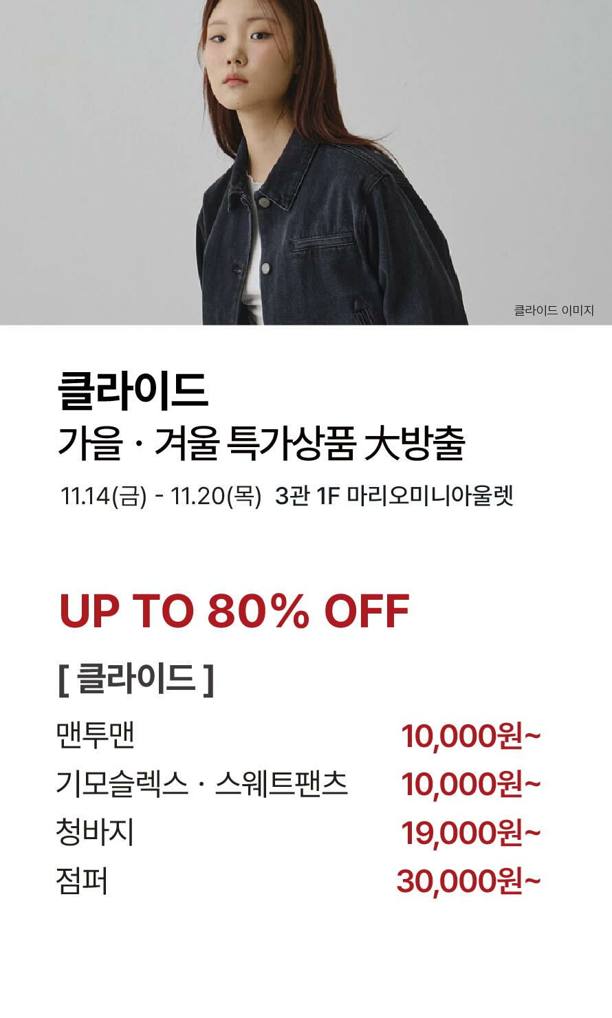 [클라이드] 가을/겨울 특가 상품 大방출 (2025-11-13 ~ 2025-11-20)