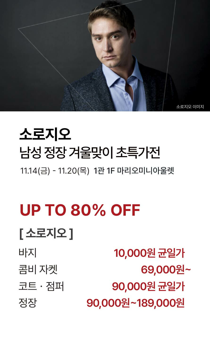 [소로지오] 남성 정장 겨울맞이 초특가전 (2025-11-13 ~ 2025-11-20)