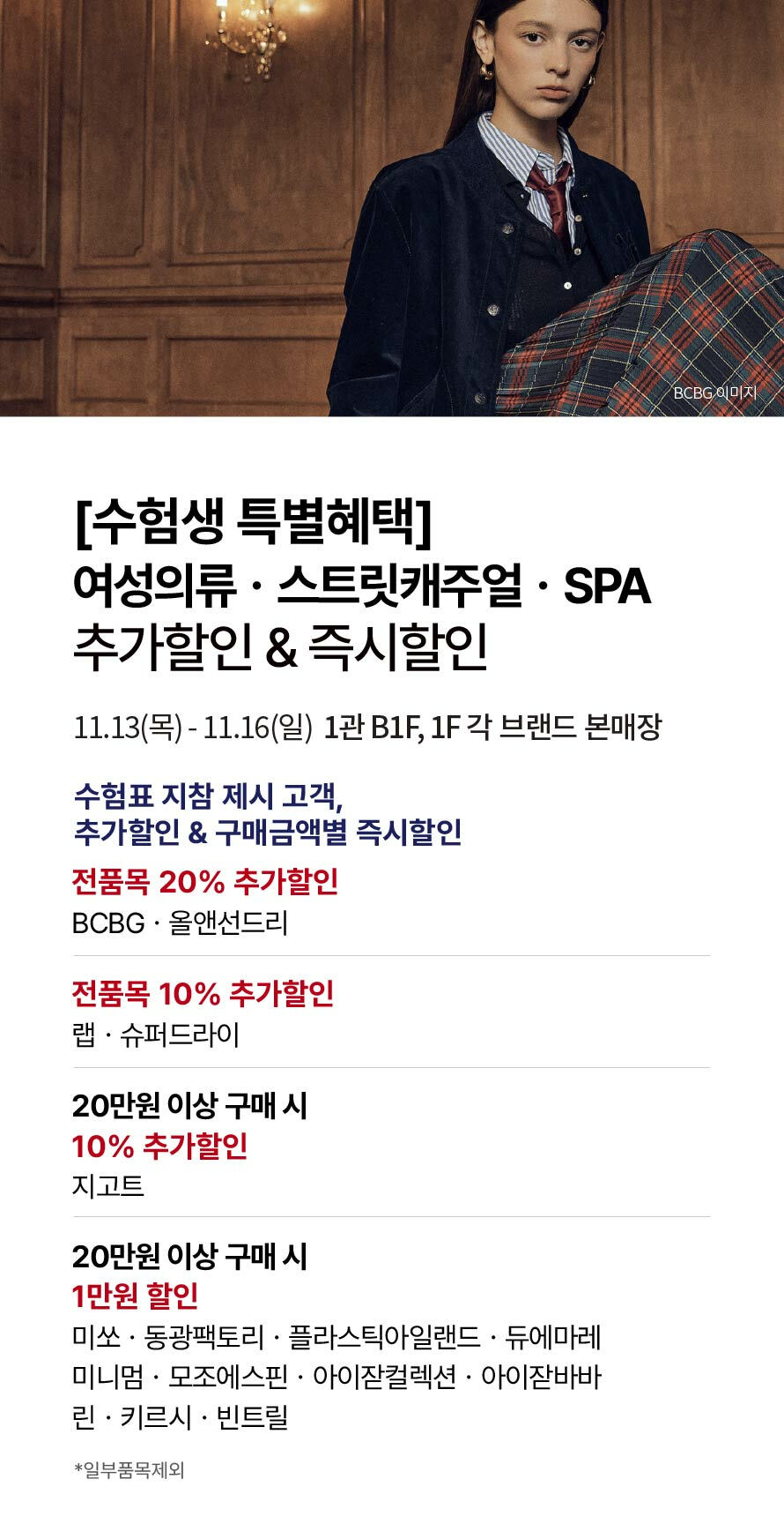 [여성캐릭터·스트릿캐주얼·잡화·SPA] 수험생 특별혜택 추가할인 & 즉시할인 (2025-11-13 ~ 2025-11-16)