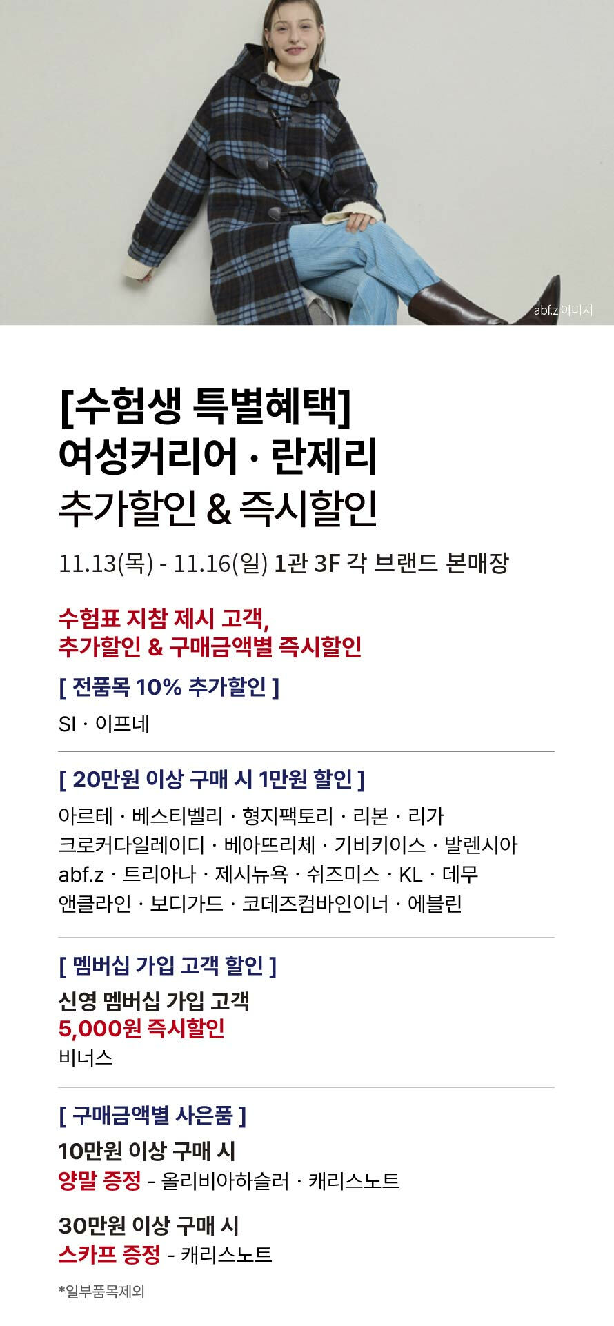 [여성 커리어·란제리] 수험생 특별혜택 추가할인 & 즉시할인 (2025-11-13 ~ 2025-11-16)