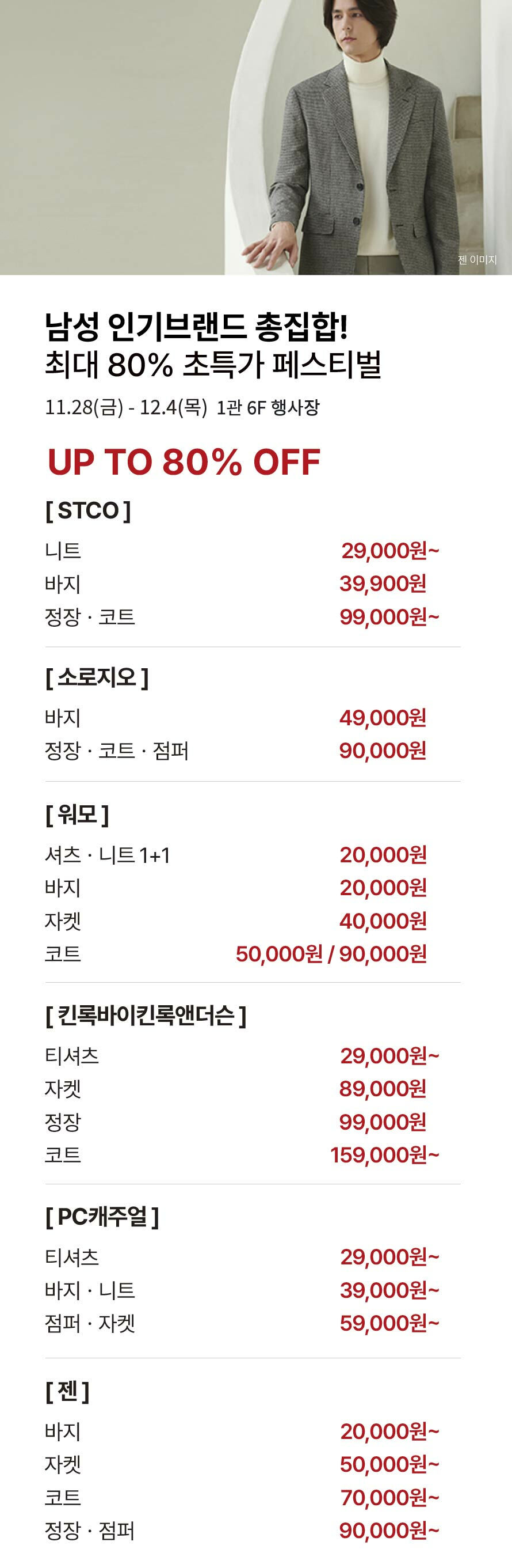 [남성 인기브랜드 총집합!] 최대 80% 초특가 페스티벌 (2025-11-28 ~ 2025-12-04)