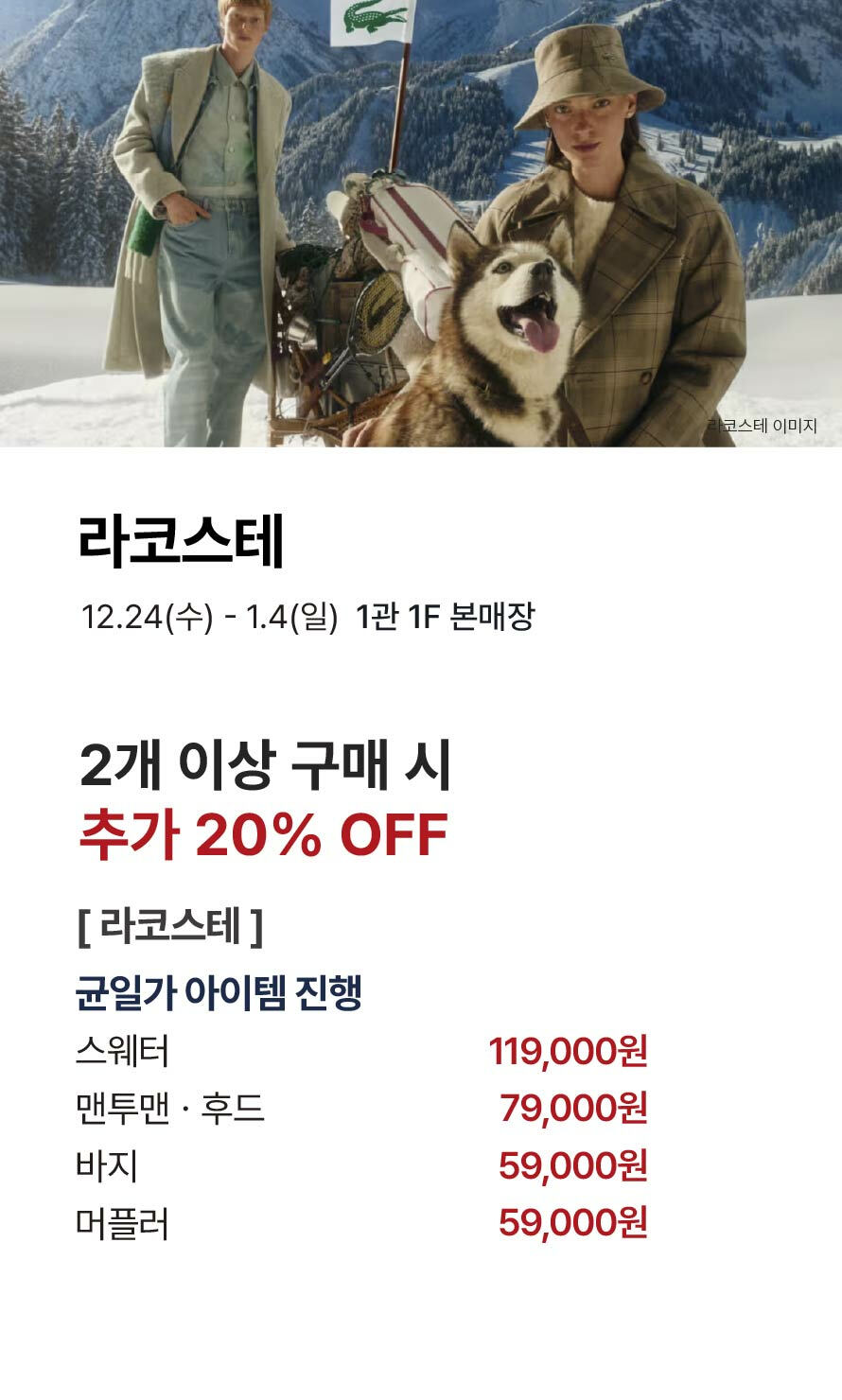 [라코스테] 추가할인 & 균일가 (2025-12-24 ~ 2026-01-04)