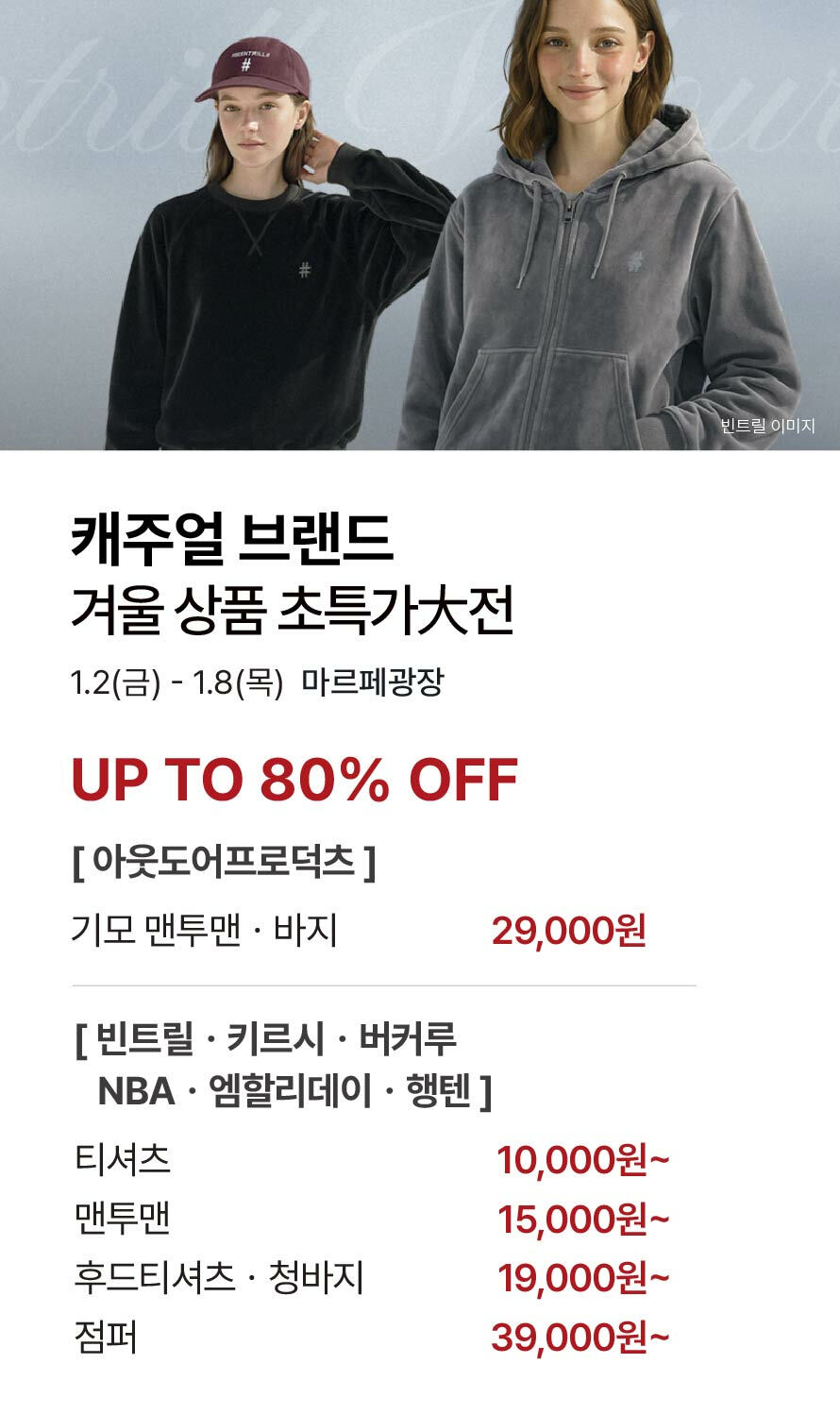 [캐주얼 브랜드] 겨울 상품 초특가 大전 (2026-01-02 ~ 2026-01-08)