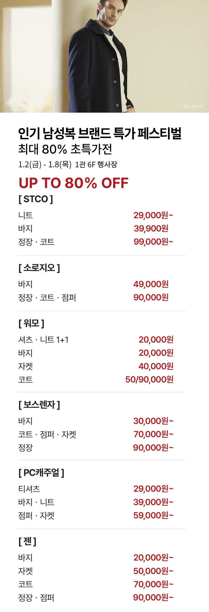 [인기 남성복 브랜드 특가 페스티벌] 최대 80% 초특가전 (2026-01-02 ~ 2026-01-08)