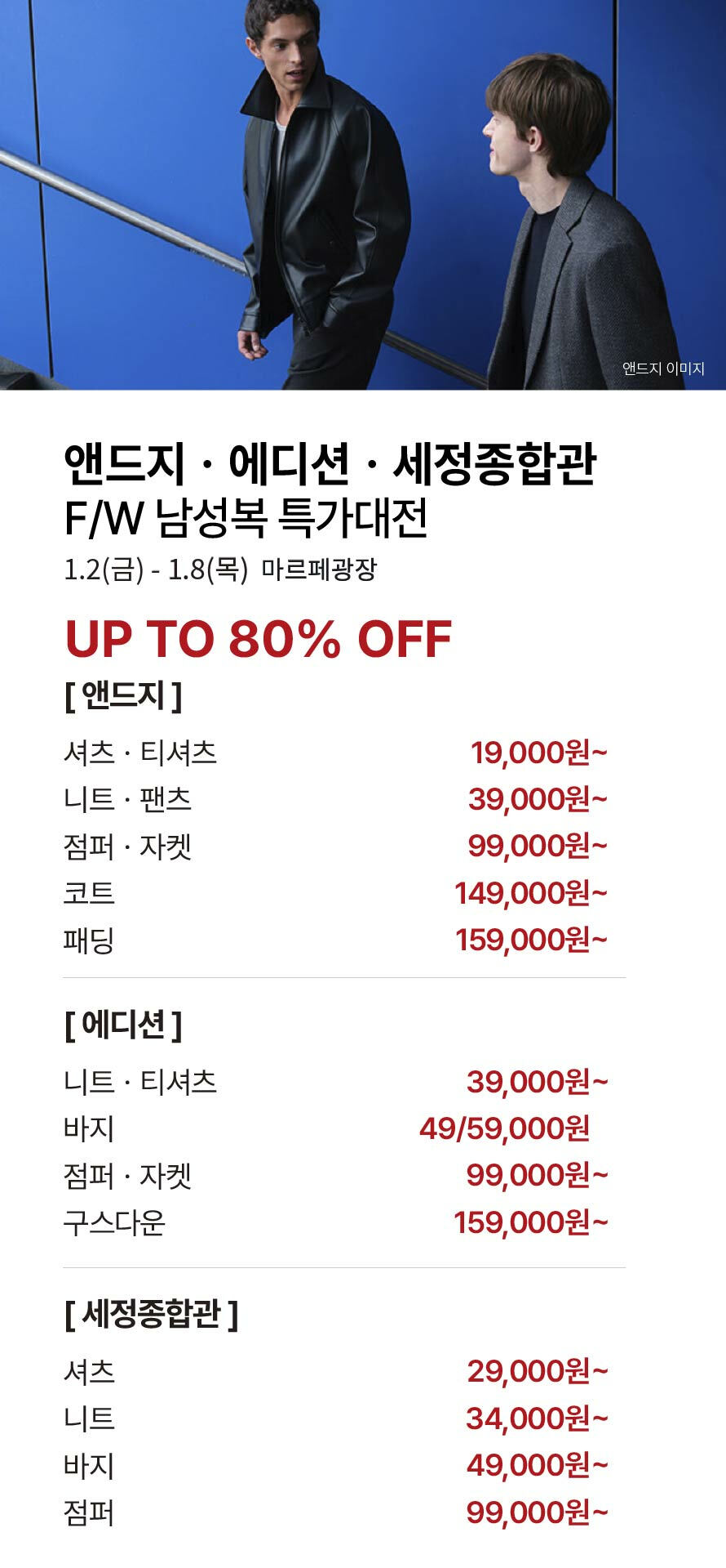 [앤드지·에디션·세정종합관] F/W 남성복 특가대전 (2026-01-02 ~ 2026-01-08)