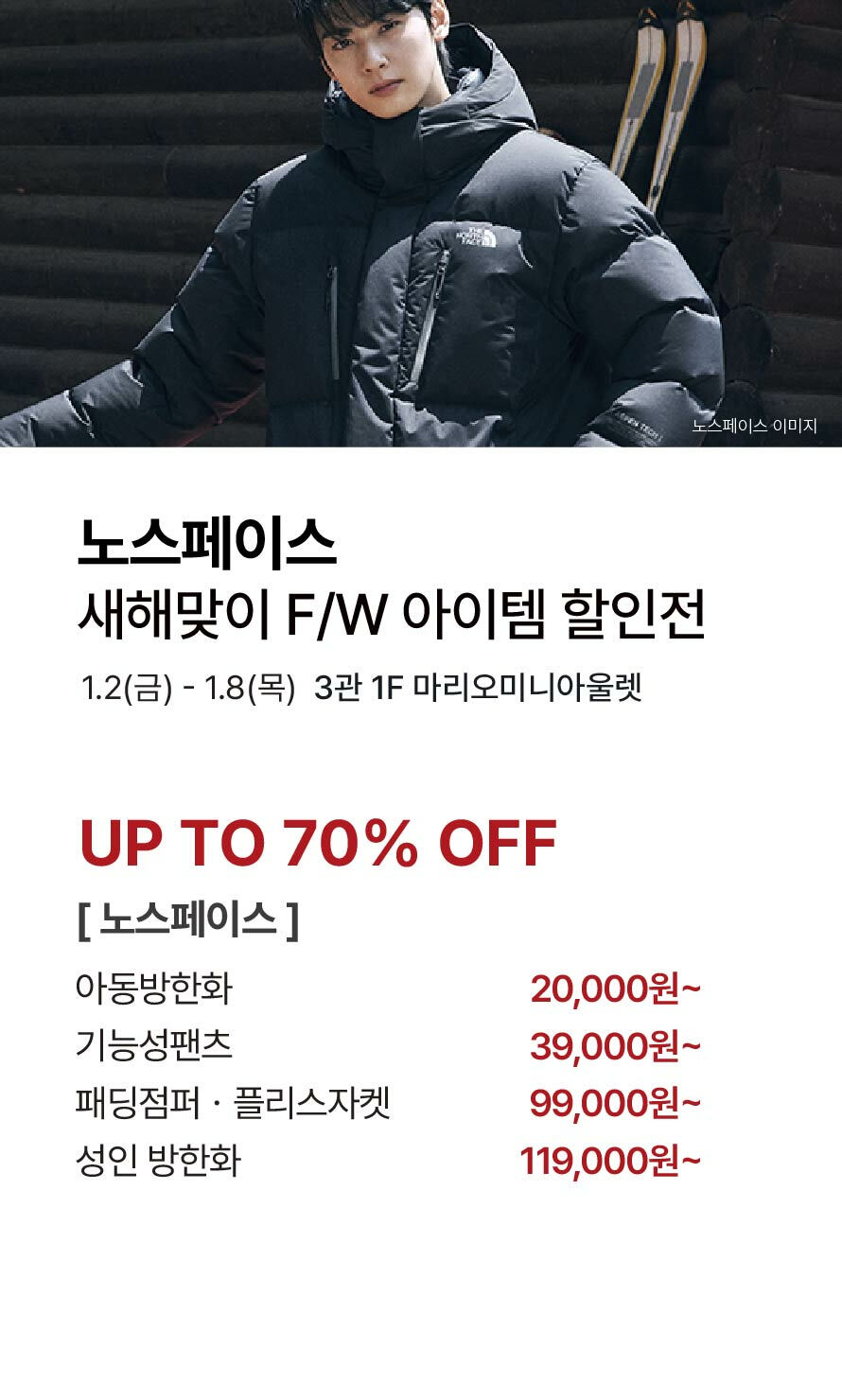 [노스페이스] 새해맞이 F/W 아이템 할인전 (2026-01-02 ~ 2026-01-08)