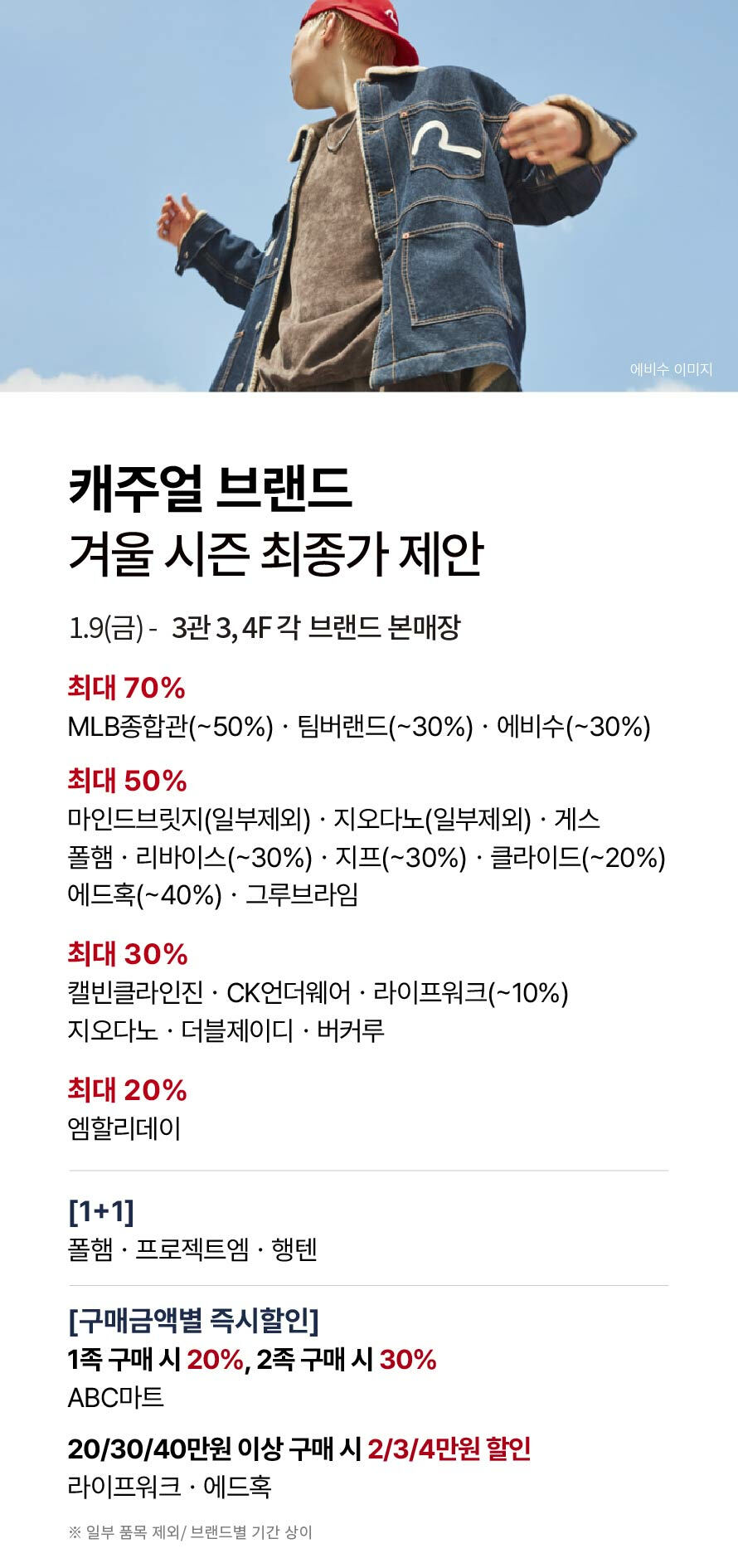 [캐주얼 브랜드] 겨울 시즌 최종가 제안 (2026-01-09 ~ 각 브랜드 별 기간 상이)