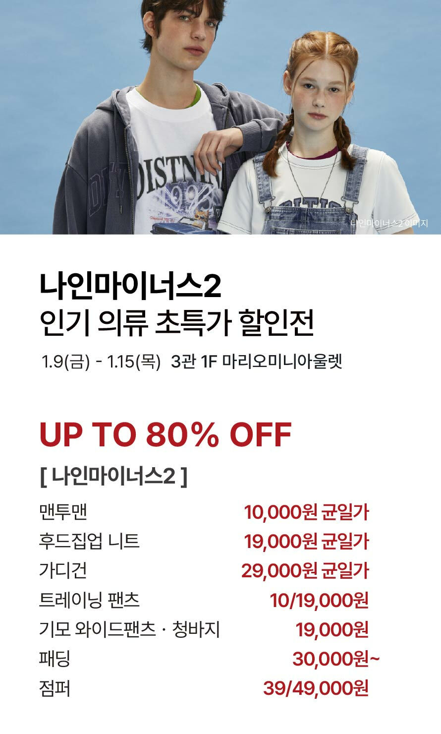 [나인마이너스2] 인기 의류 초특가 할인전 (2026-01-09 ~ 2026-01-15)