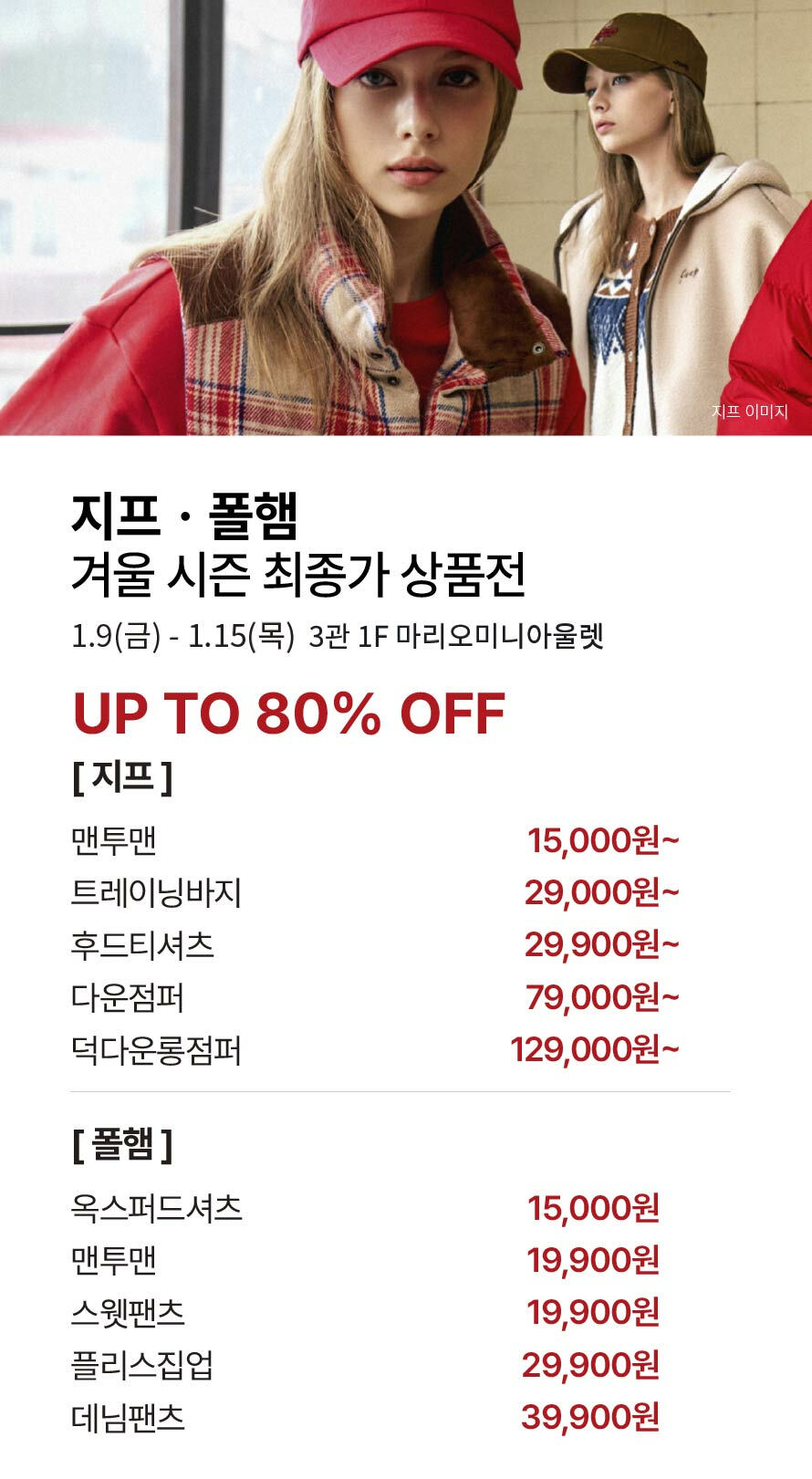 [지프·폴햄] 겨울 시즌 최종가 상품전 (2026-01-09 ~ 2026-01-15)