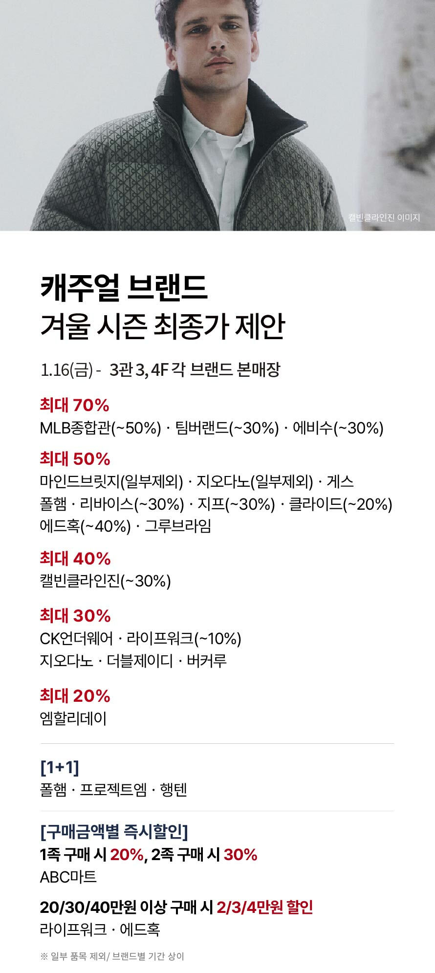 [캐주얼 브랜드] 겨울 시즌 최종가 제안! (2026-01-16 ~ 각 브랜드 별 기간 상이)