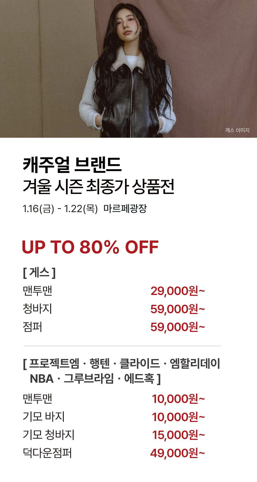 [캐주얼 브랜드] 겨울 시즌 최종가 상품전 (2026-01-16 ~ 2026-01-22)