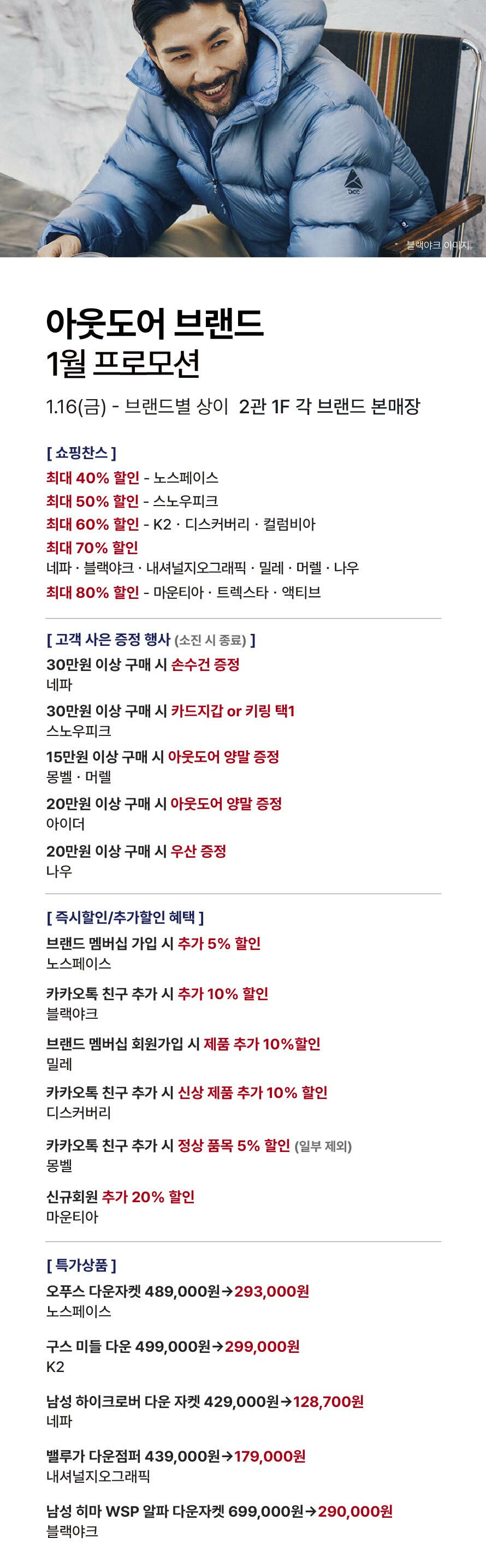 [아웃도어 브랜드] 1월 프로모션 (2026-01-16 ~ 각 브랜드 별 기간 상이)