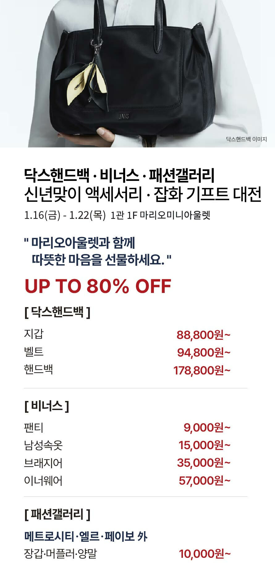 [닥스핸드백·비너스·패션갤러리] 신년맞이 액세서리·잡화 기프트 대전 (2026-01-16 ~ 2026-01-22)