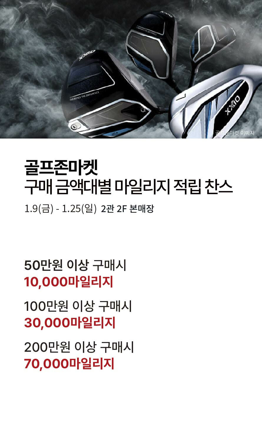 [골프존마켓] 구매 금액대별 마일리지 적립 찬스 (2026-01-09 ~ 2026-01-25)