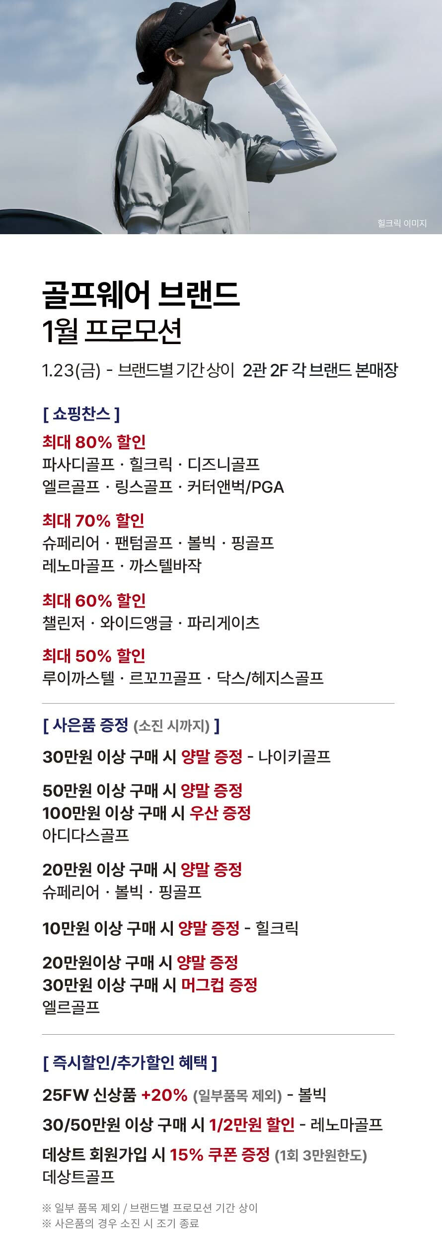 [골프웨어 브랜드] 1월 프로모션 (2026-01-23 ~ 각 브랜드 별 기간 상이)