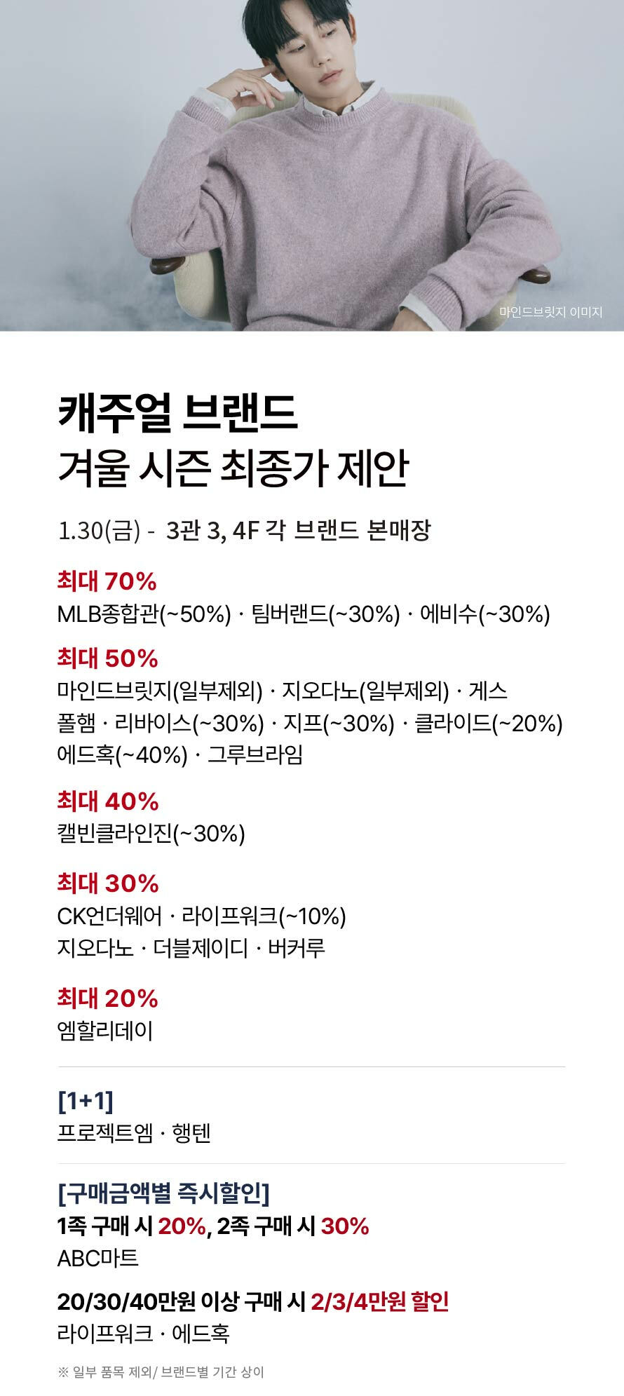 [캐주얼 브랜드] 겨울 시즌 최종가 제안 (2026-01-30 ~ 각 브랜드 별 기간 상이)
