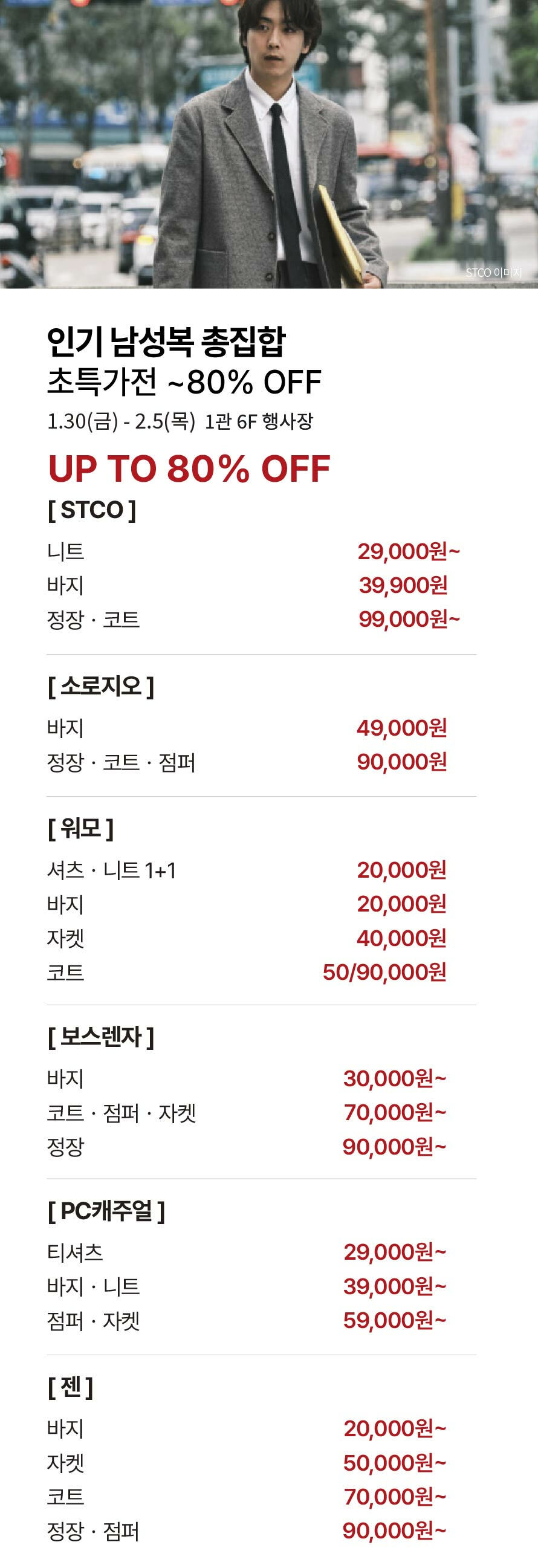 인기 남성복 총집합 초특가전 ~80% OFF (2026-01-30 ~ 2026-02-05)