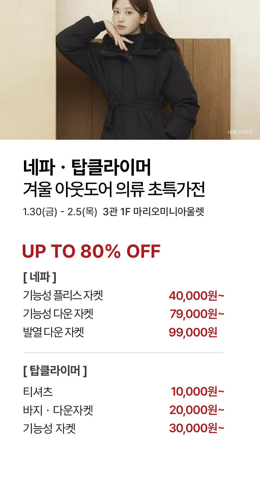 [네파·탑클라이머] 겨울 아웃도어 의류 초특가전 (2026-01-30 ~ 2026-02-05)