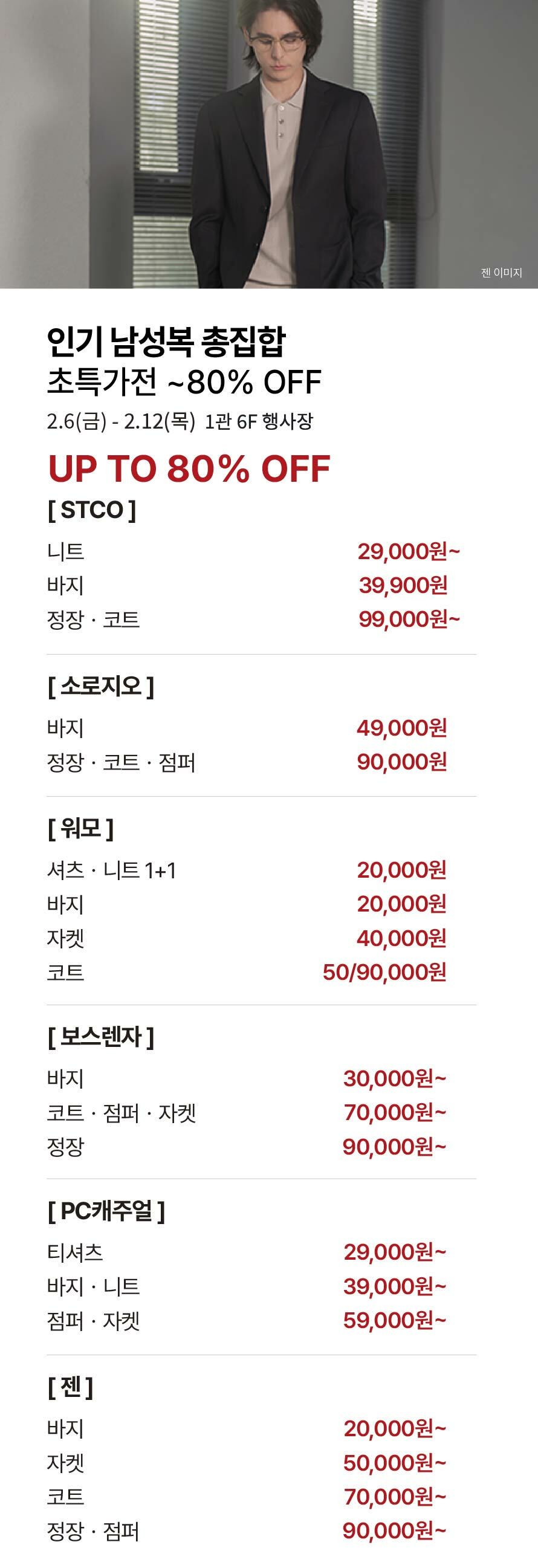 [인기 남성복 총집합] 초특가전 ~80% OFF (2026-02-05 ~ 2026-02-12)