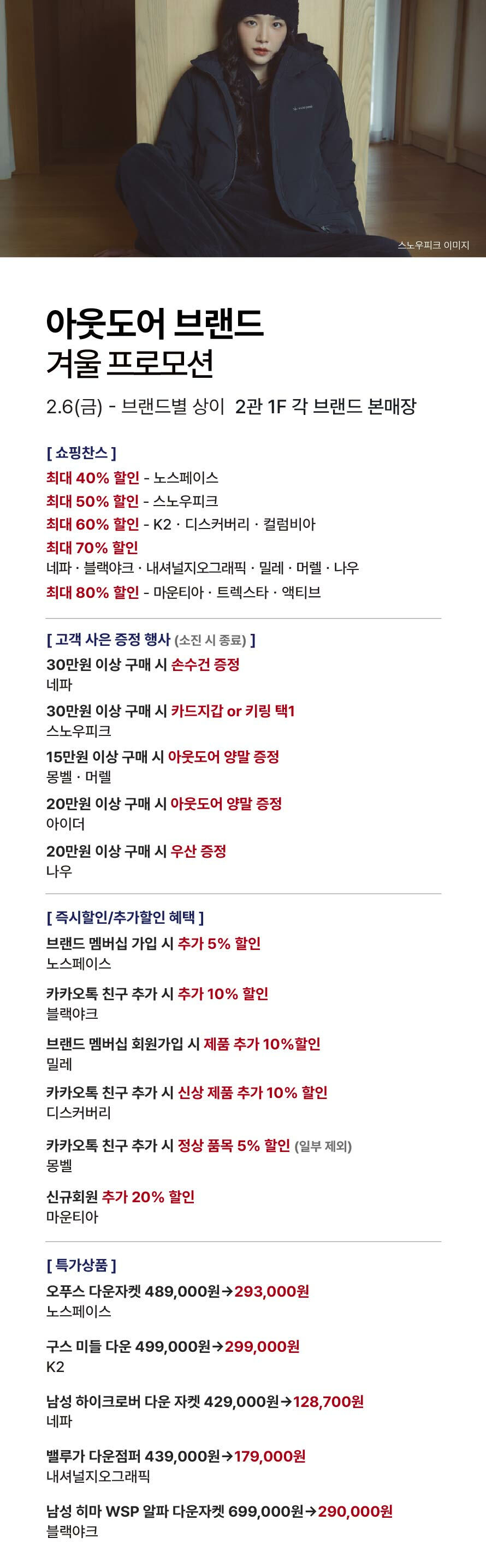 [아웃도어 브랜드] 겨울 프로모션 (2026-02-05 ~ 2026-02-12)