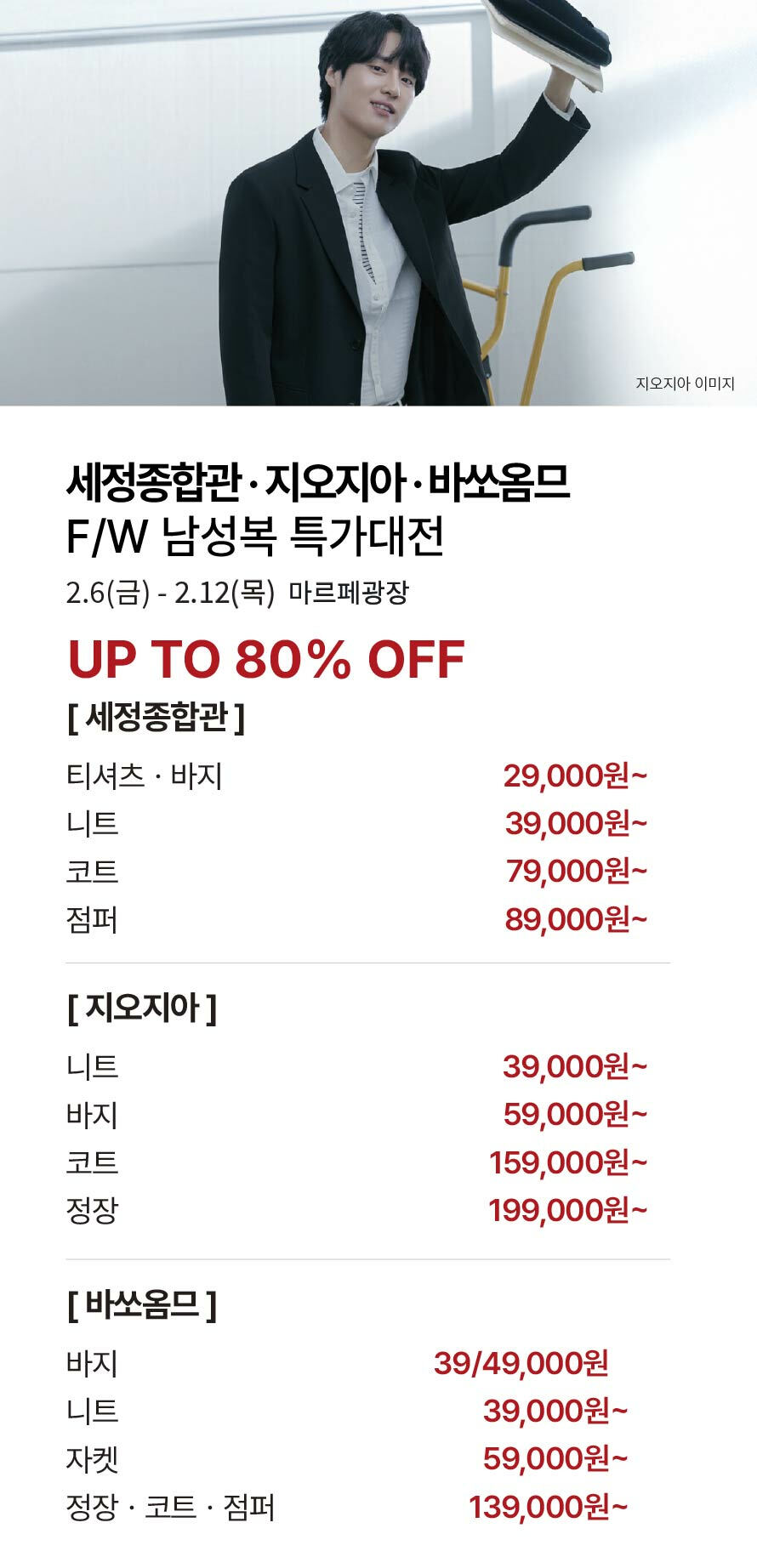 [세정종합관·지오지아·바쏘옴므] F/W 남성복 특가대전 (2026-02-05 ~ 2026-02-12)