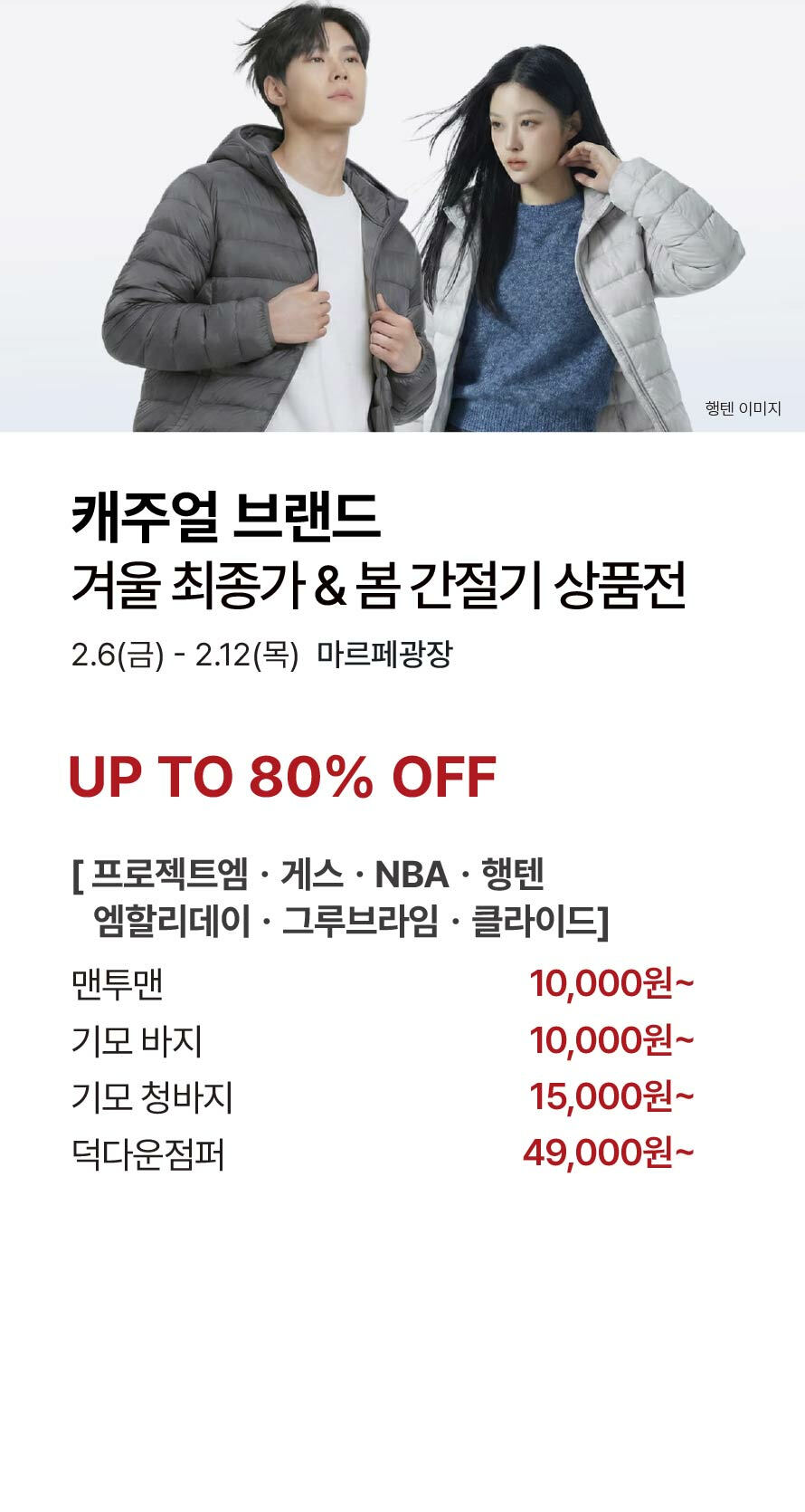 [캐주얼 브랜드] 겨울 최종가 & 봄 간절기 상품전 (2026-02-05 ~ 2026-02-12)