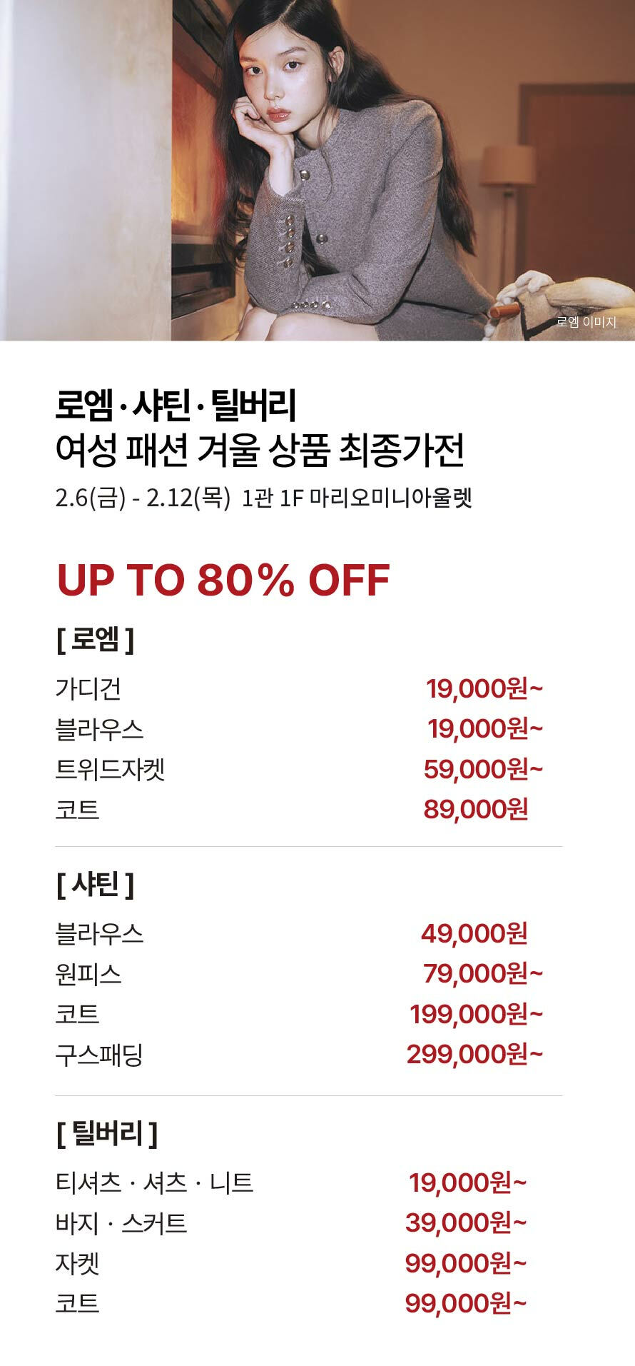 [로엠·샤틴·틸버리] 여성 패션 겨울 상품 최종가전 (2026-02-06 ~ 2026-02-12)
