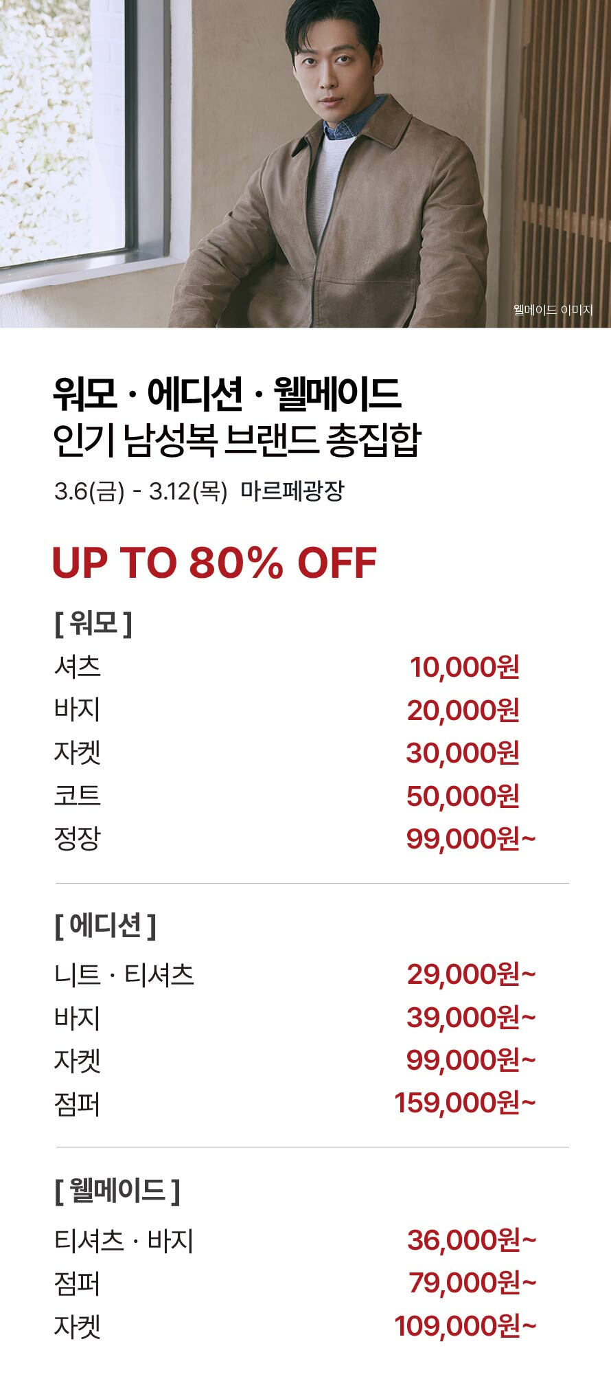 [워모·에디션·웰메이드] 인기 남성복 브랜드 총집합 (2026-03-06 ~ 2026-03-12)