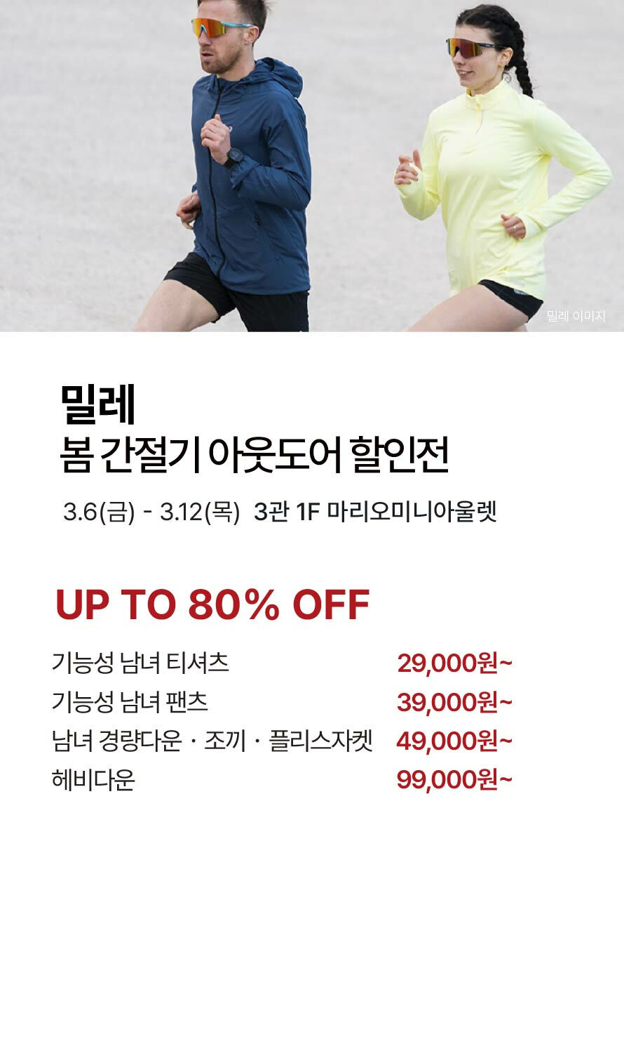 [밀레] 봄 간절기 아웃도어 제품 할인전 (2026-03-05 ~ 2026-03-12)