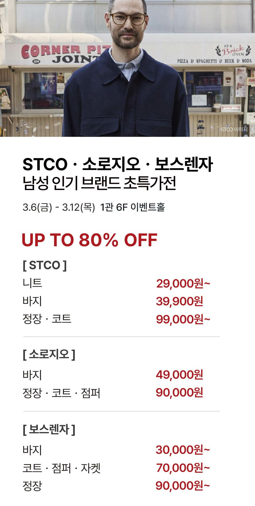 [STCO·소로지오·보스렌자] 남성 인기 브랜드 초특가전 (2026-03-05 ~ 2026-03-12)