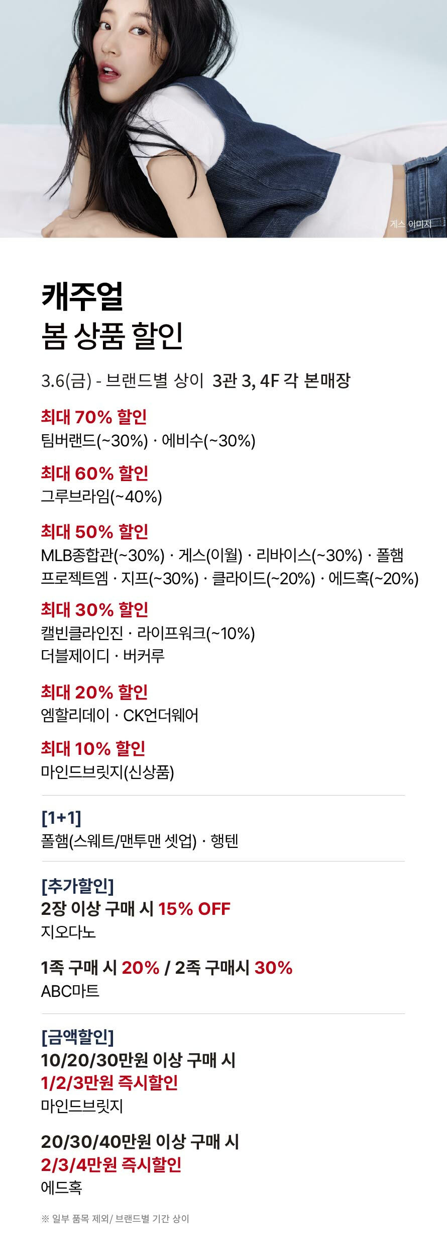 [캐주얼] 봄 상품 할인 (2026-03-06 ~ 각 브랜드 별 기간 상이)