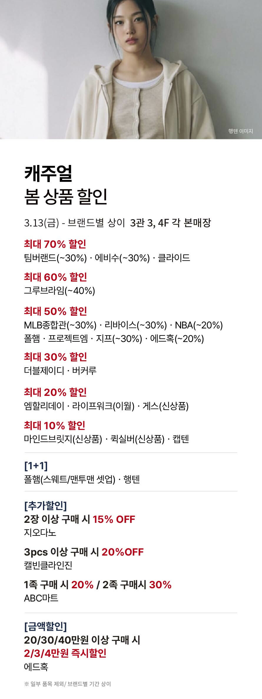 [캐주얼] 봄 상품 할인! (2026-03-13 ~ 각 브랜드 별 기간 상이)