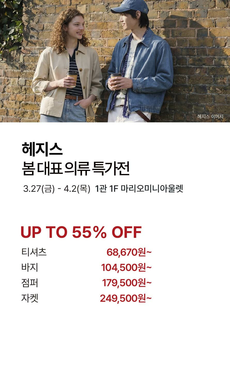[헤지스] 봄 대표 의류 특가전 (2026-03-27 ~ 2026-04-02)