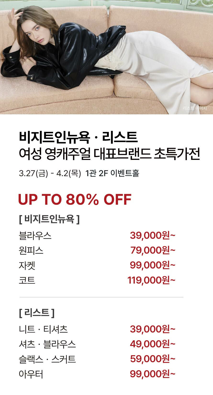 [비지트인뉴욕·리스트] 여성 영캐주얼 대표브랜드 초특가전 (2026-03-27 ~ 2026-04-02)